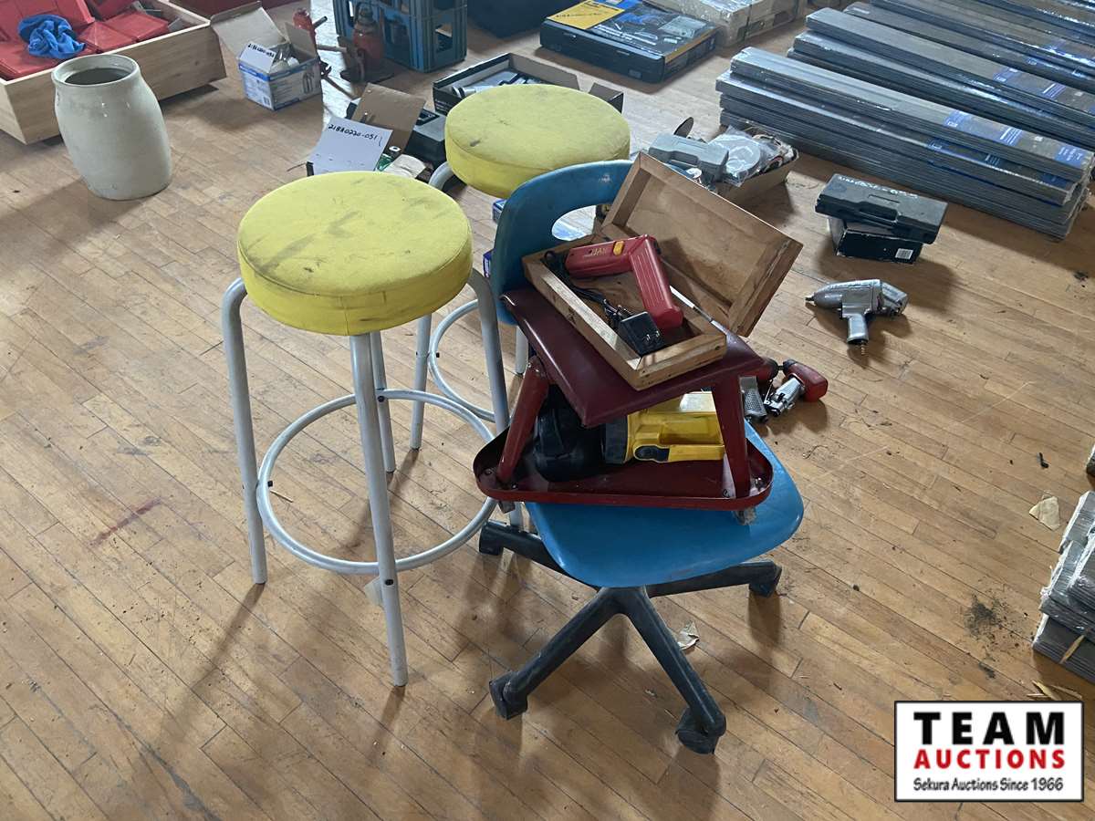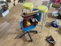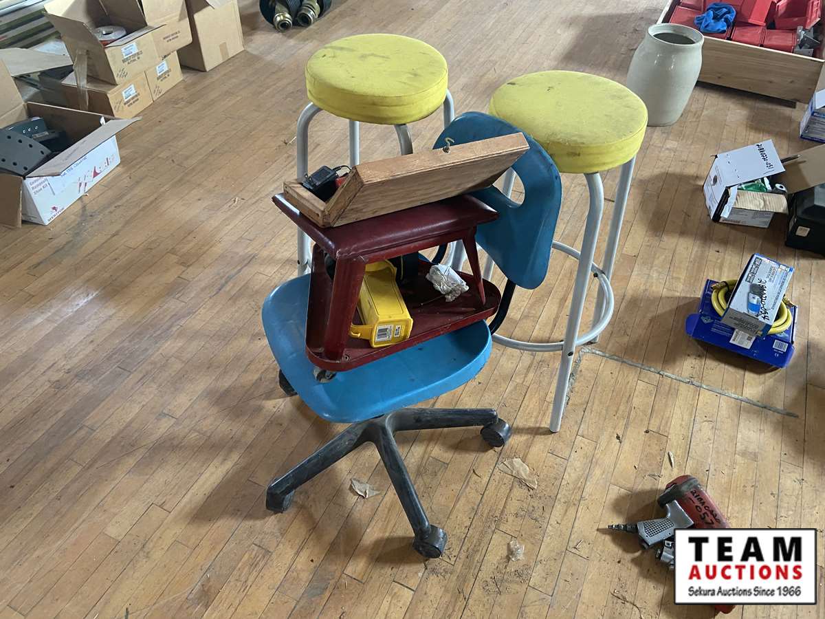 2 stools, rolling Chair, mechincs chair