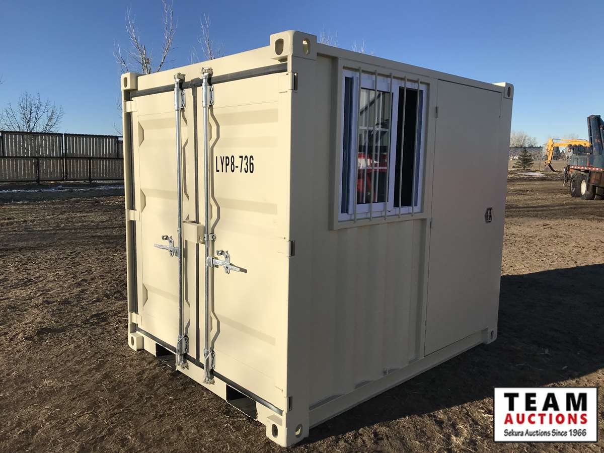6 ft 8 in. x 8 ft, side door, window, fork pockets