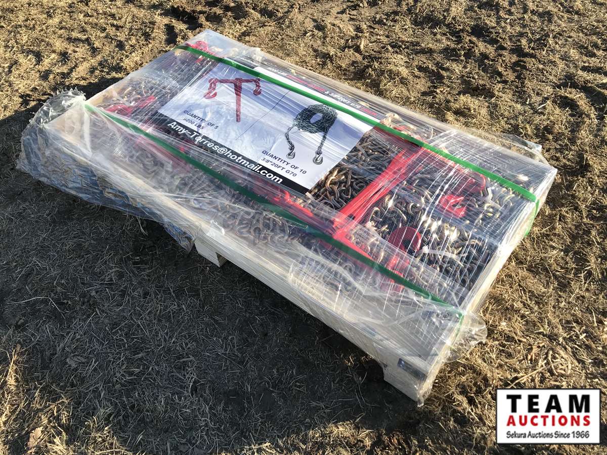 (5) 9200 lb ratchet binders, (10) 3/8 in. 20 ft G70 chains