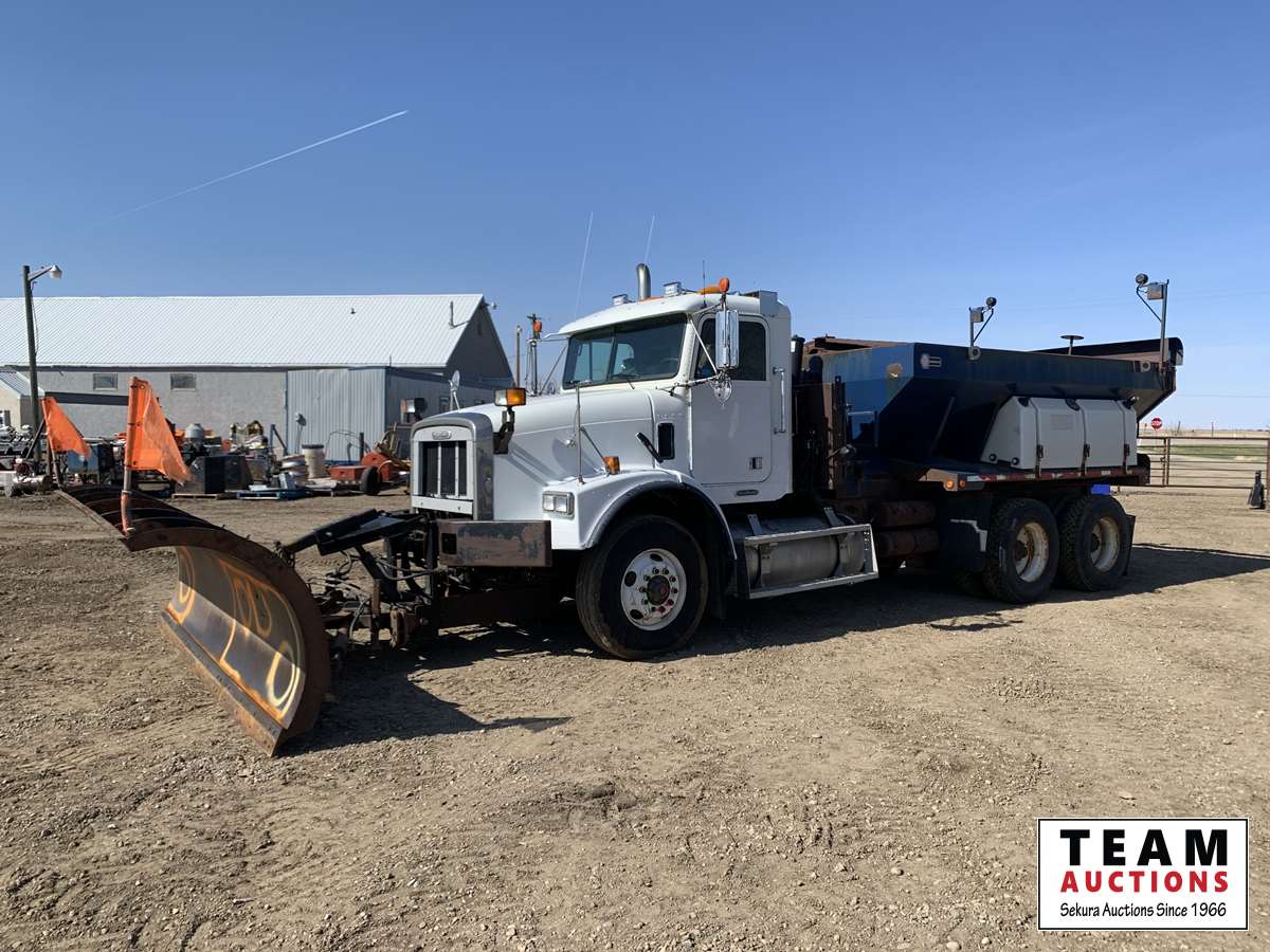 Caterpillar C12, Eaton Fuller 8LL, 12 ft blade, 9 ft snow wing, sander/ dump box, 204 in. WB, 4.33 ratio, 18,740 lb frt, 40,000 lb rear, spring susp, 11R22.5, AB CVIP 08/20