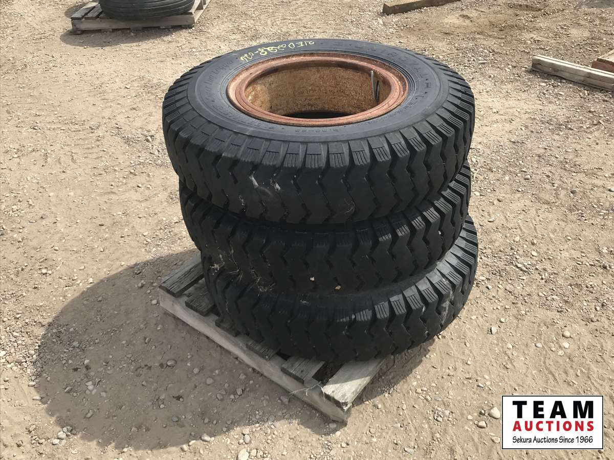 900 (3) 9.00-20 Tires W/ Steel Rims