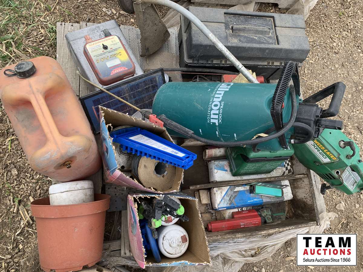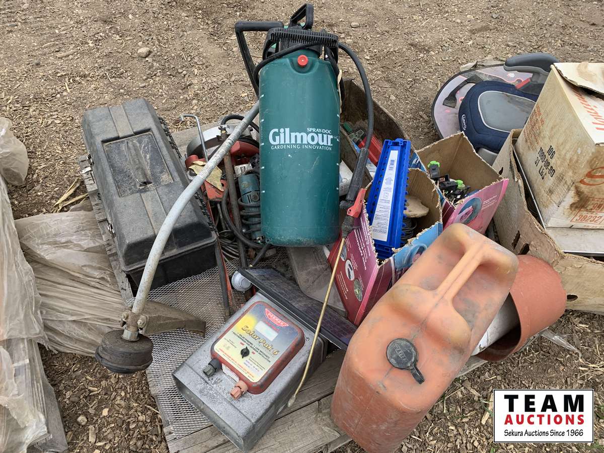 hand sprayer, fuel can, electrical fence supplies, etc