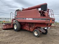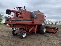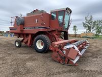 reel lift control, reel speed control, 18 ft straight cut header,3 speed transmission, diesel, 13 ft auger, chaff spreader, 23.1-26 fronts, 10.00-16 rears