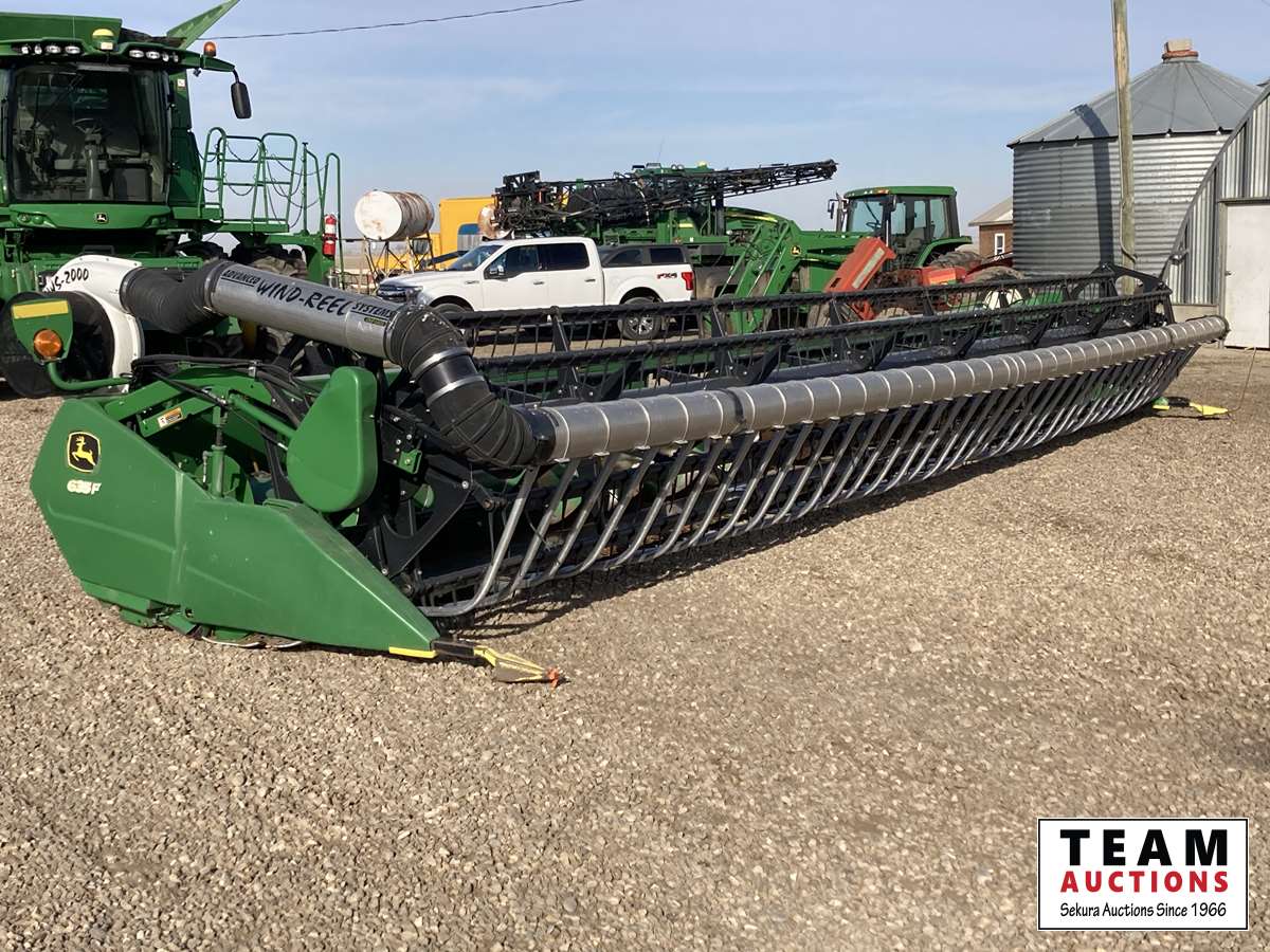 Single knife drive, pickup reel, hydraulic F/A, single point hookup, height control sensors, AWS-2000 Wind Reel, to fit John Deere S670