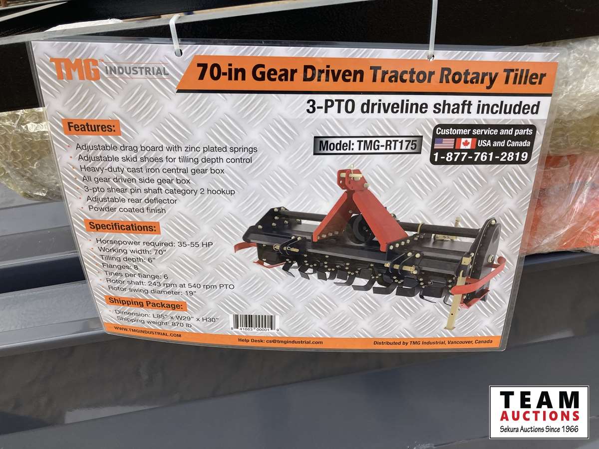 296 TMG Industrial 70 Inch Gear Driven Rotary Tiller (Unused)