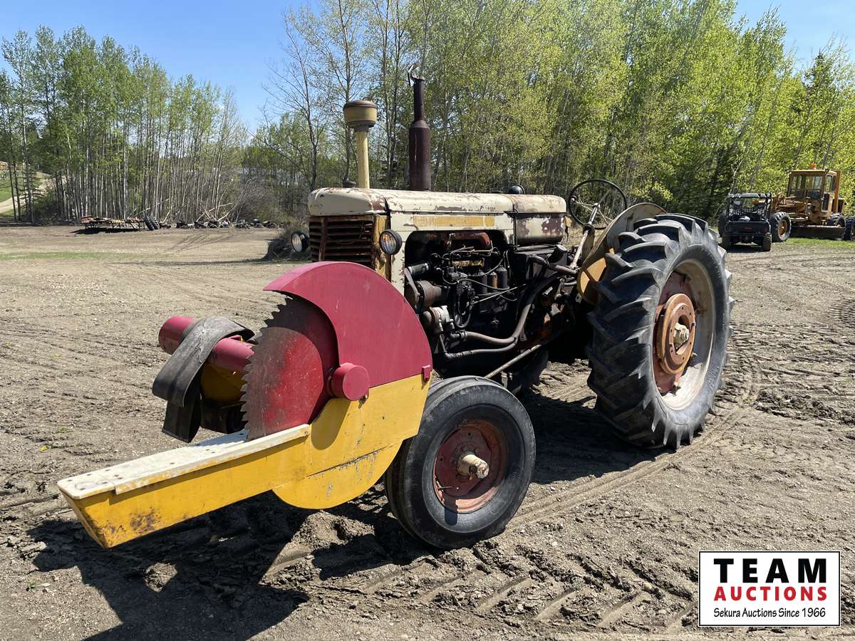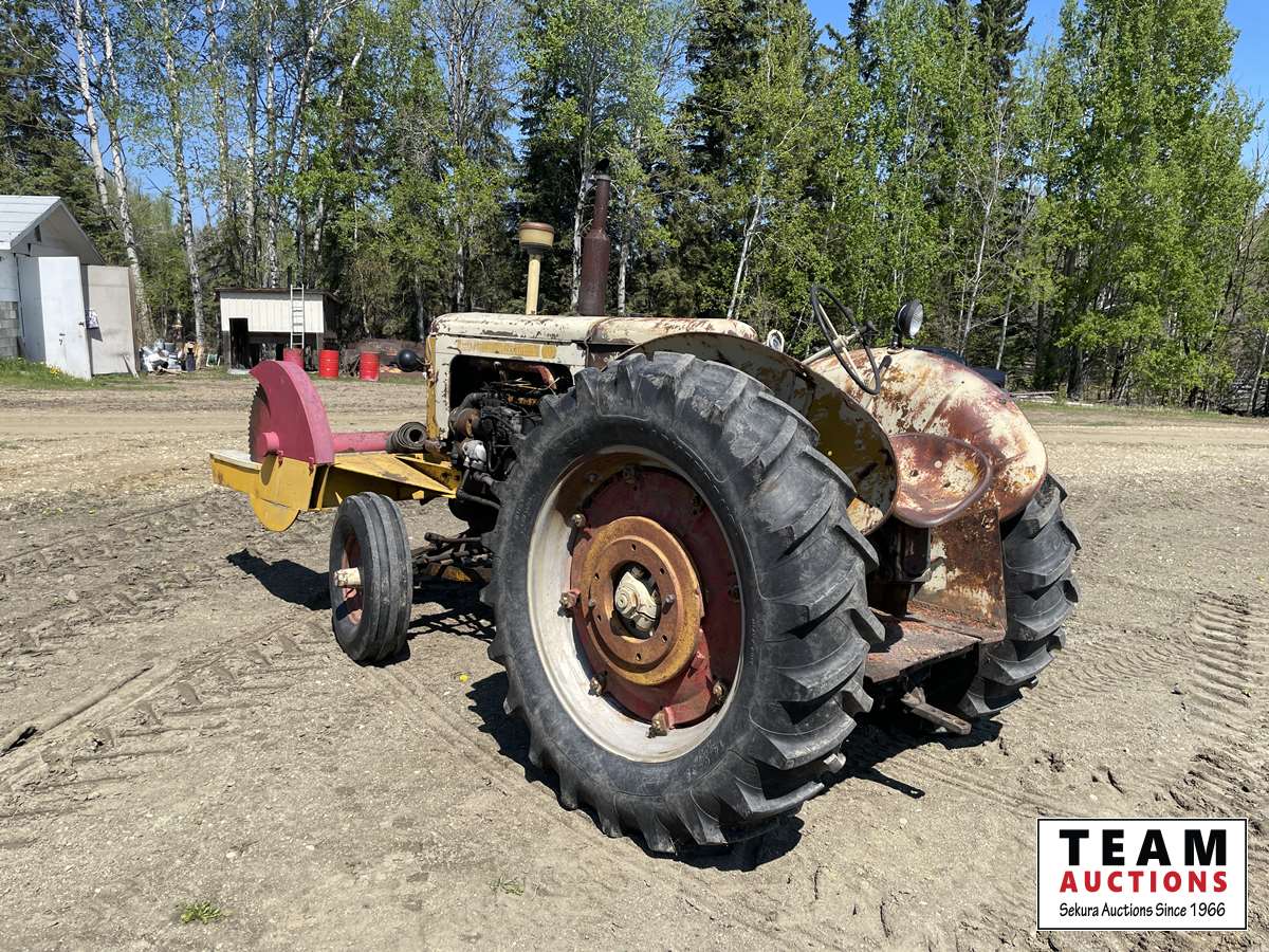 diesel engine, front mount wood saw, belt pulley, 540 pto, single rear hydraulic outlet, real good 14.9X38 rear tires