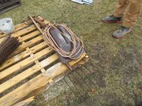 (3) forks, (2) scoop shovels, lariat