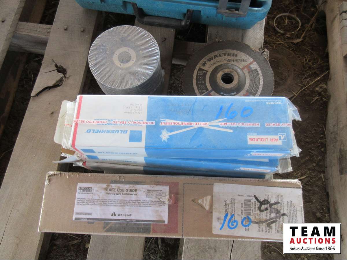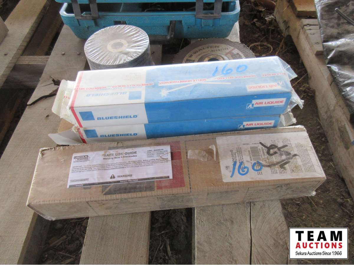 (3 1/2) boxes of 7018 3/32 welding rod, 4 1/2" grinding discs, miscellaneous discs
