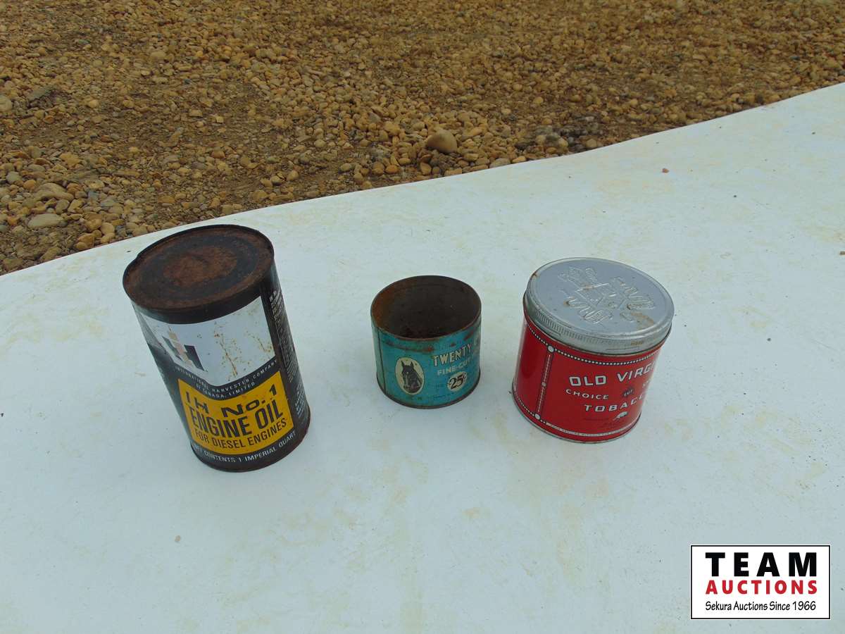 52 (2) Tobacco Cans, 1 full Oil Can