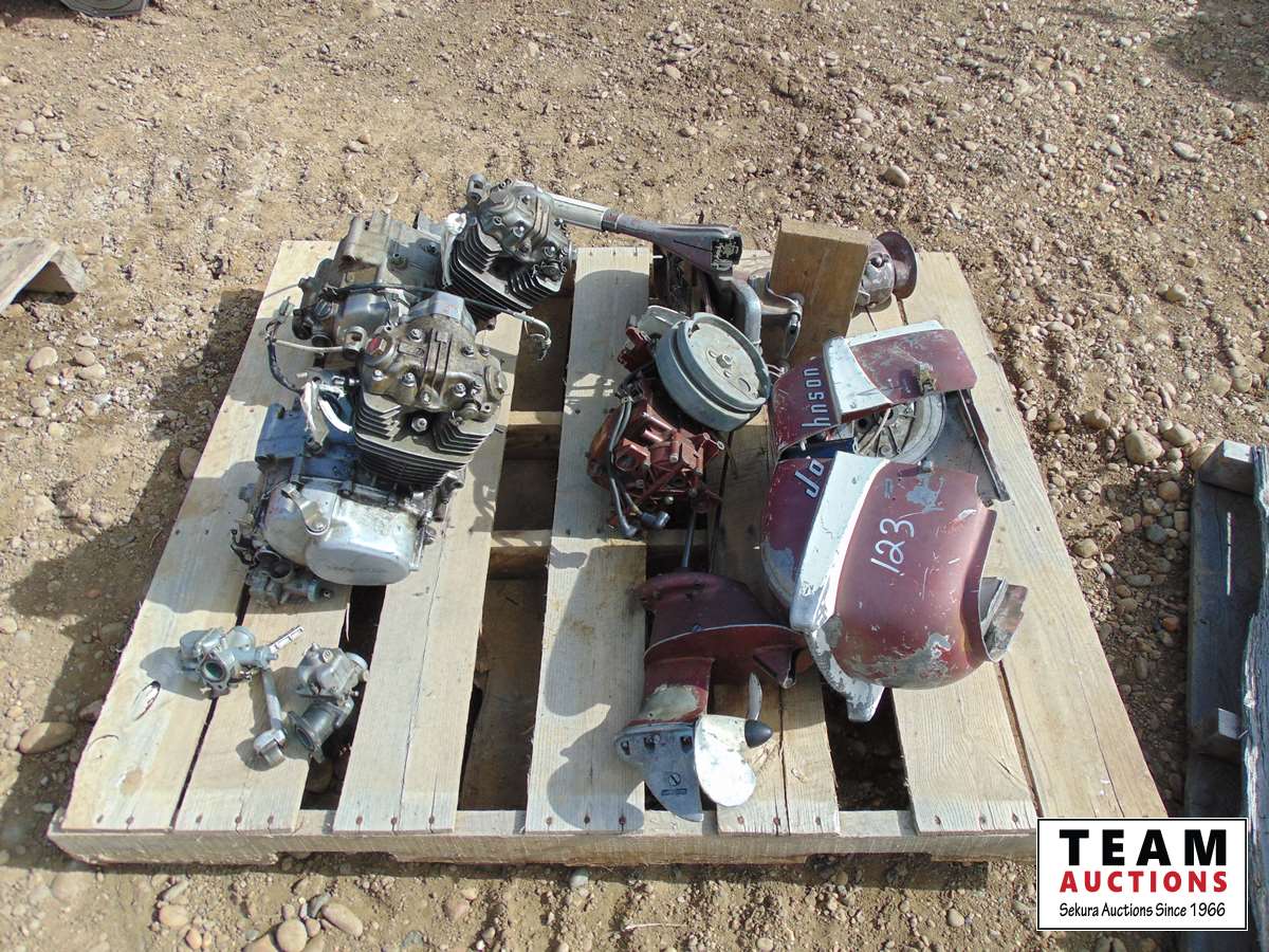 133 Pallet of 2 Honda Motorbike Engines, & Boat Motor Parts