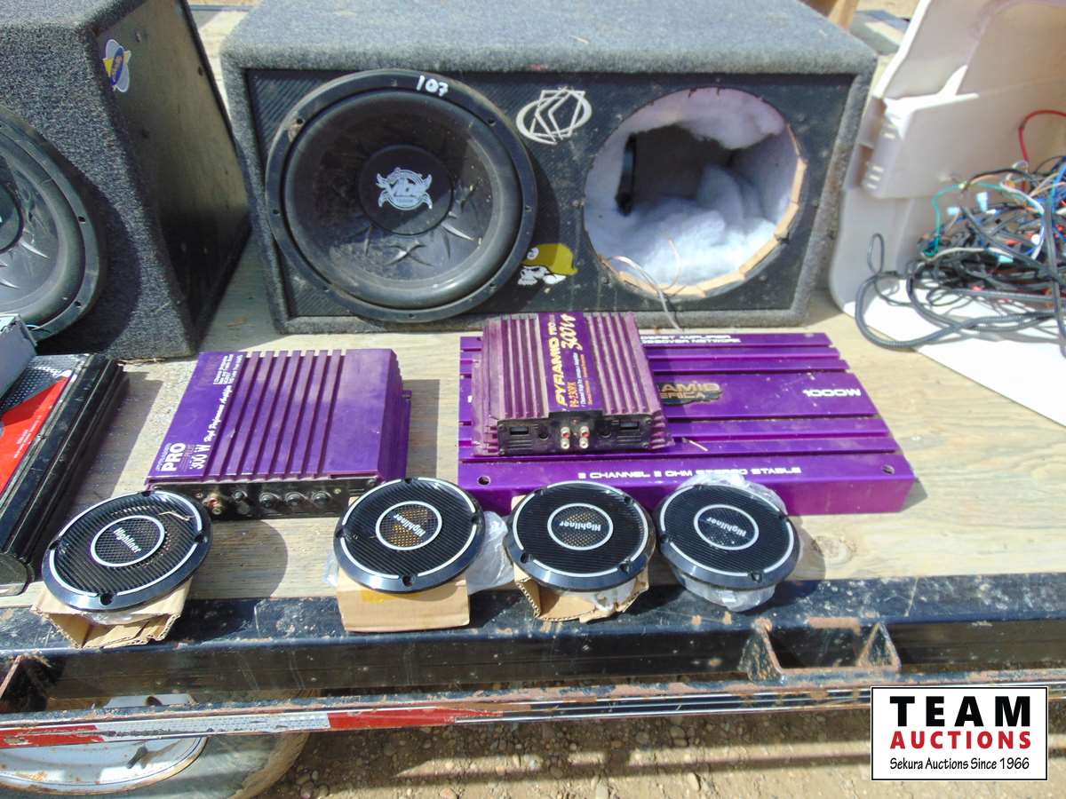 71 Vehicle Stereo System w/ 5 Amps, Speakers, Cables