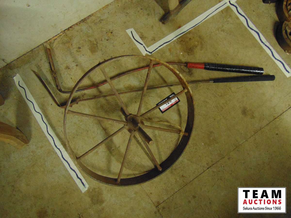 120 (2) Antique Hand Scythes & Antique Wooden Wheel