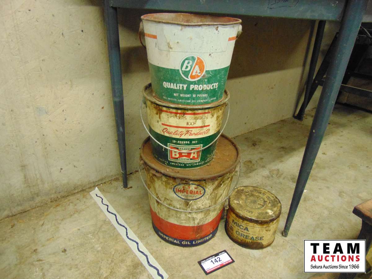 (1) 25 lbs Imperial Oil Limited pail, (2) 10 lbs B-A Quality Products, (1) 5 lbs Imperial Oil Limited Mica Axle Grease