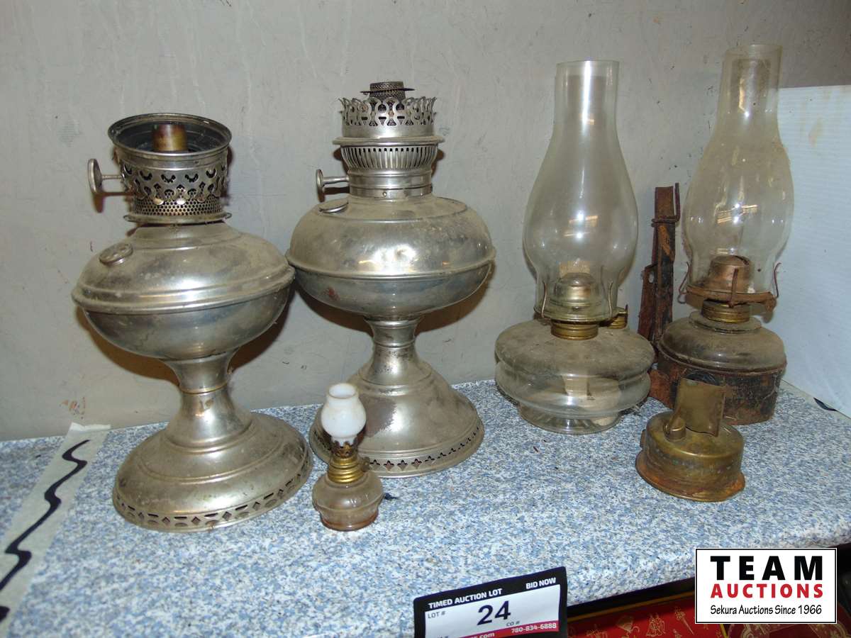 24 (4) Assorted Antique Oil Lamps