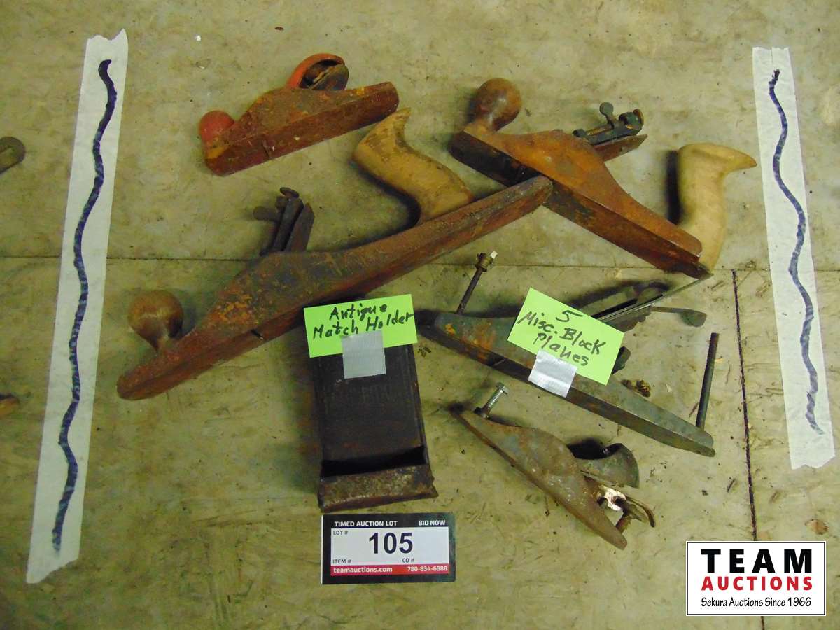105 (5) Antique Block Planes & Antique Match Holder
