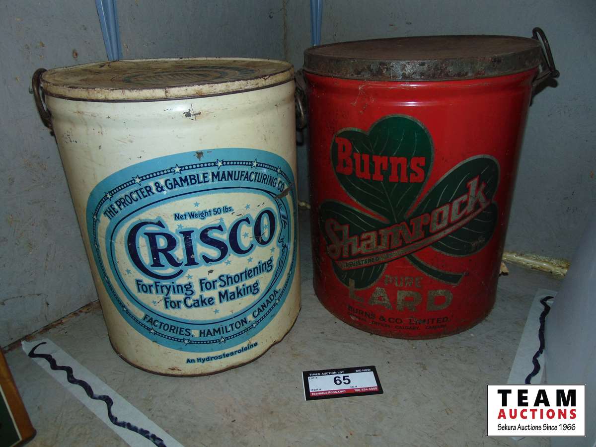 (1) Crisco 50 lbs pail, (1) Burns Shamrock 50 lbs pail