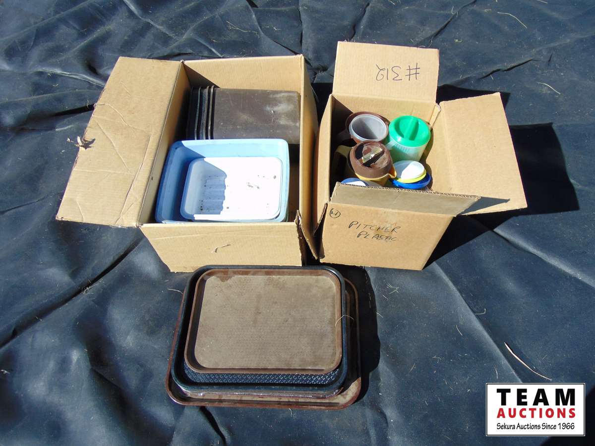 312 Assortment of Serving Trays, Water Pitchers & Miscellaneous