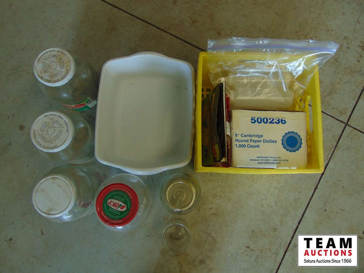 368 Paper Doilies, Glass Jars, (3) Small Tubs & Miscellaneous