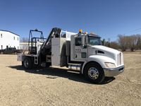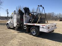 Paccar ISC8.3, 300 HP, exhaust brake, Allison 3500RDS A/T, Hendrickson A/R suspension, 14596 lb front, Dana S23190 23,000 lb rears, 248 in. WB, 5.57 ratio, 10 ft bed, 2012 Hiab 200-5, ctr mtd folding boom, dual ctrls, hydraulic outriggers, s/n 20004719, Crane Cert. EXP 08/2021, Central air compressor w/Honda GX340 engine, 2 ft x 4 ft man basket, 12R22.5F, 11R22.5R, AB CVIP 08/2021, 11,412 hrs, 269,423 kms
