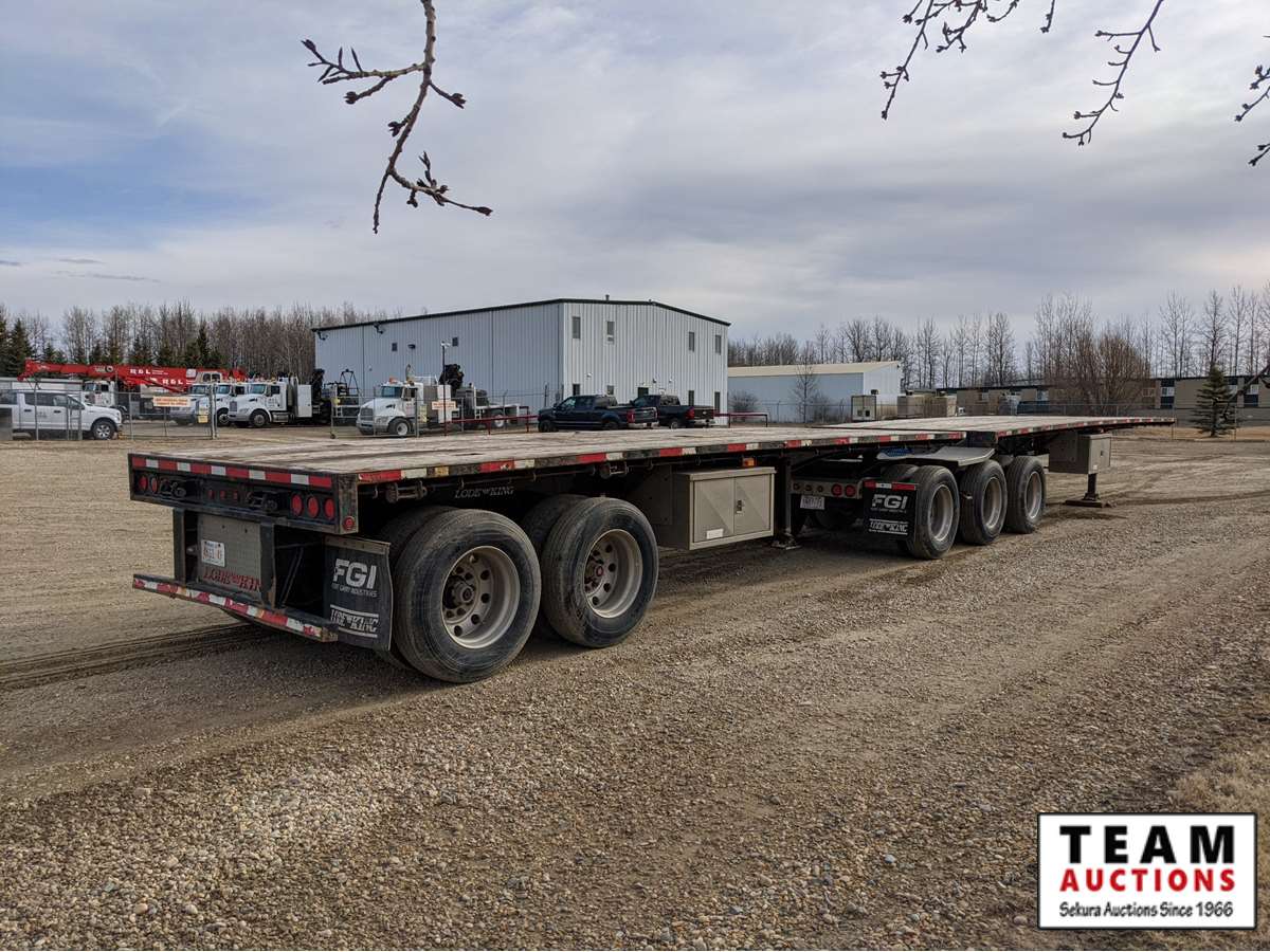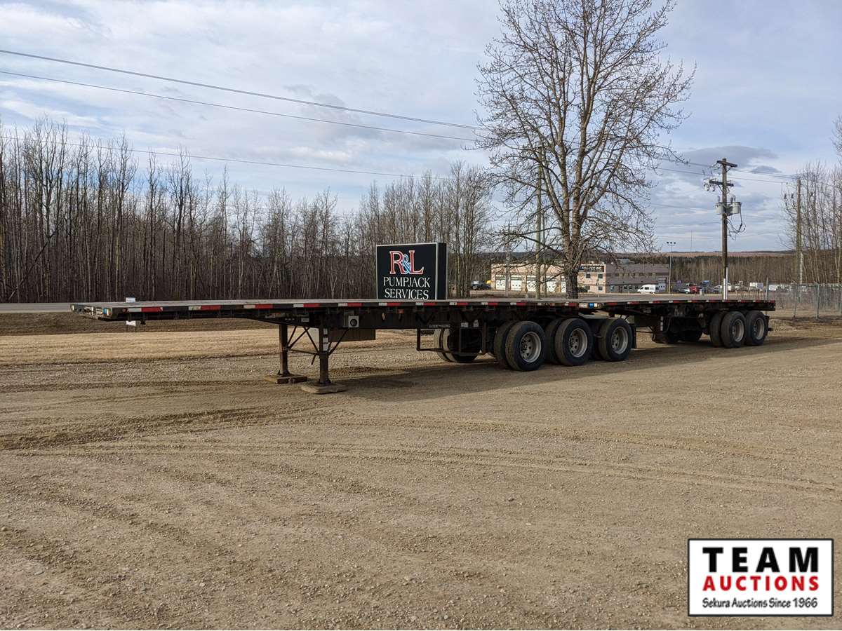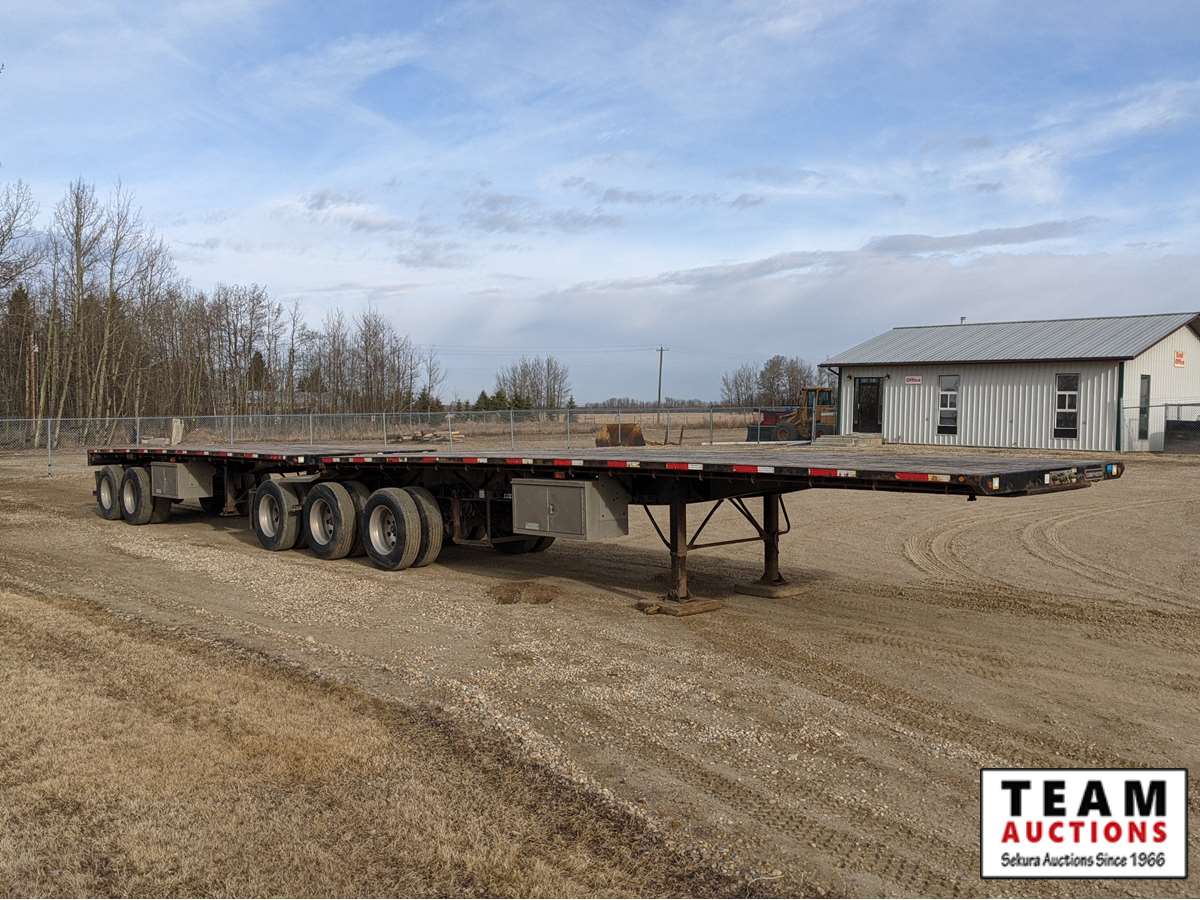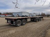 32' lead, 28' rear, 8 ft 6 in. wide, Hendrickson A/R suspension, (3) air lift, 11R24.5 on aluminum rims, 3 bar winch's, (2) tool boxes, stake pockets, dunnage rack, load gauges and air dump valves, current AB CVIP, alberta registered, have registration on hand