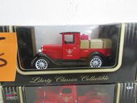 1952 Chevrolet Pro Shop truck, 1928 Chevrolet Pickup grand opening Bradford, 1938 Studebaker Panel van 2004 issued in 2008, 1948 International Pickup issued in 2014