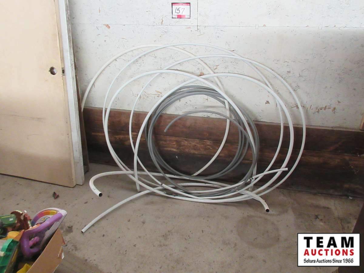 chicken wire, (2) doors, poly plumbing hose, angle iron bed frames