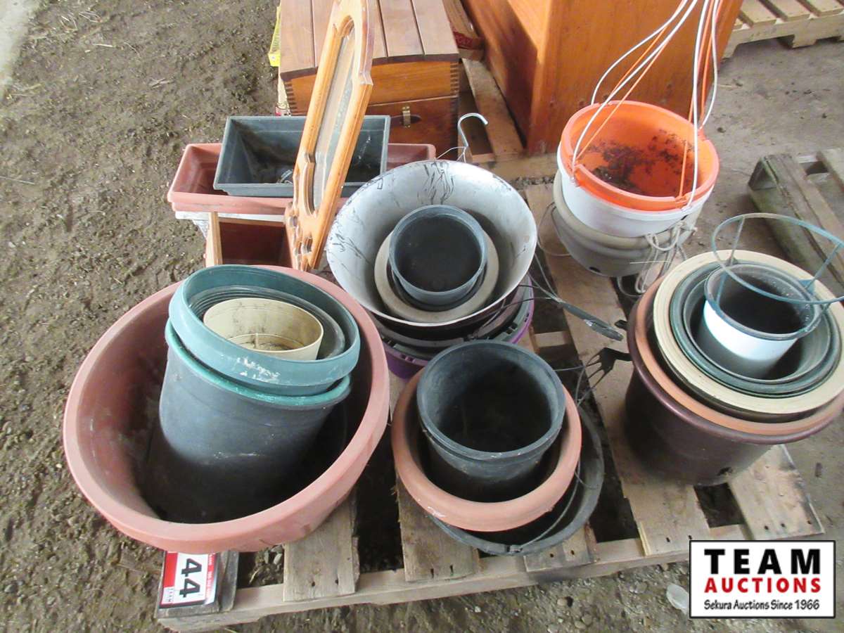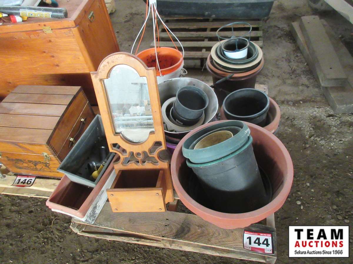 144 Pallet of Miscellaneous Flower Pots & Mirror