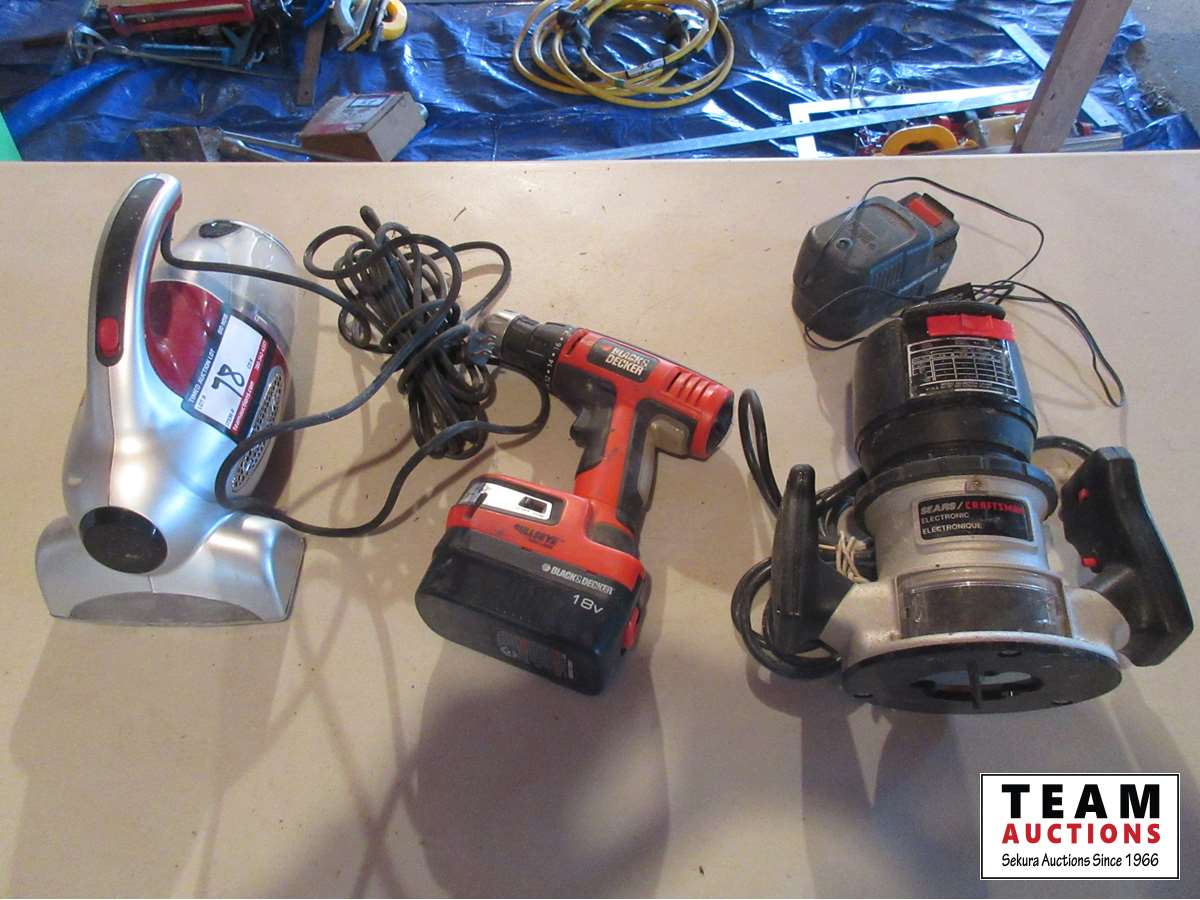 Craftsman router, vacuum, Black & Decker cordless drill