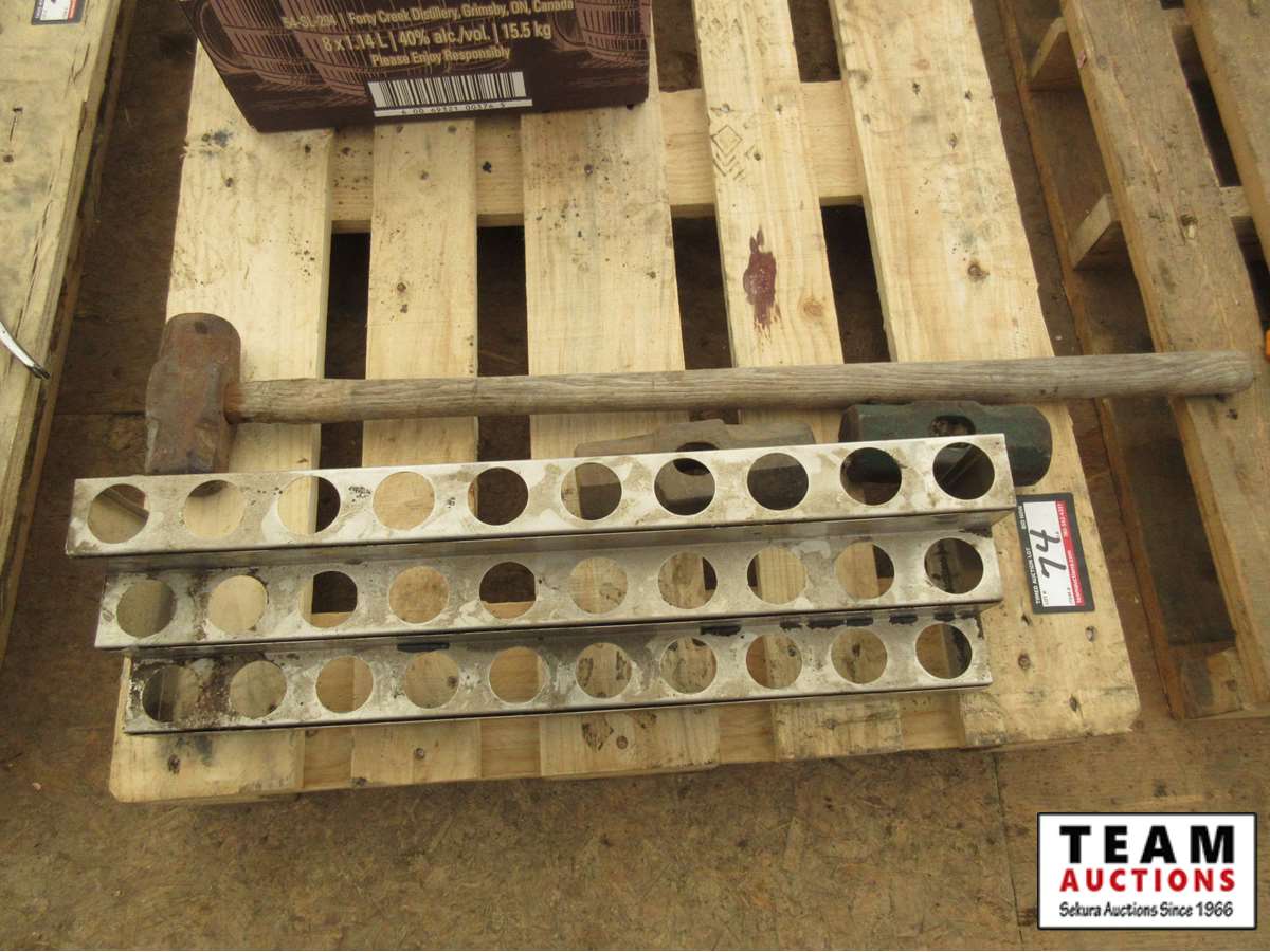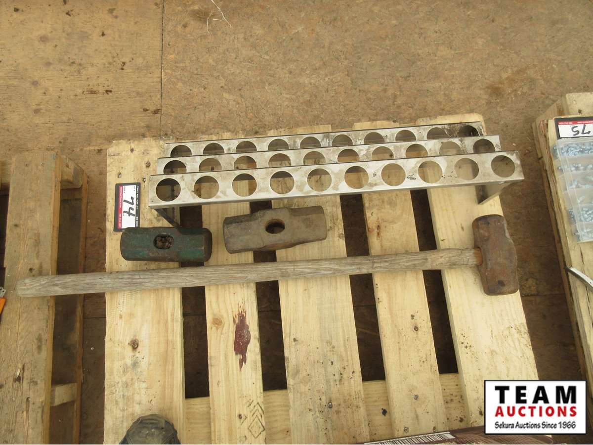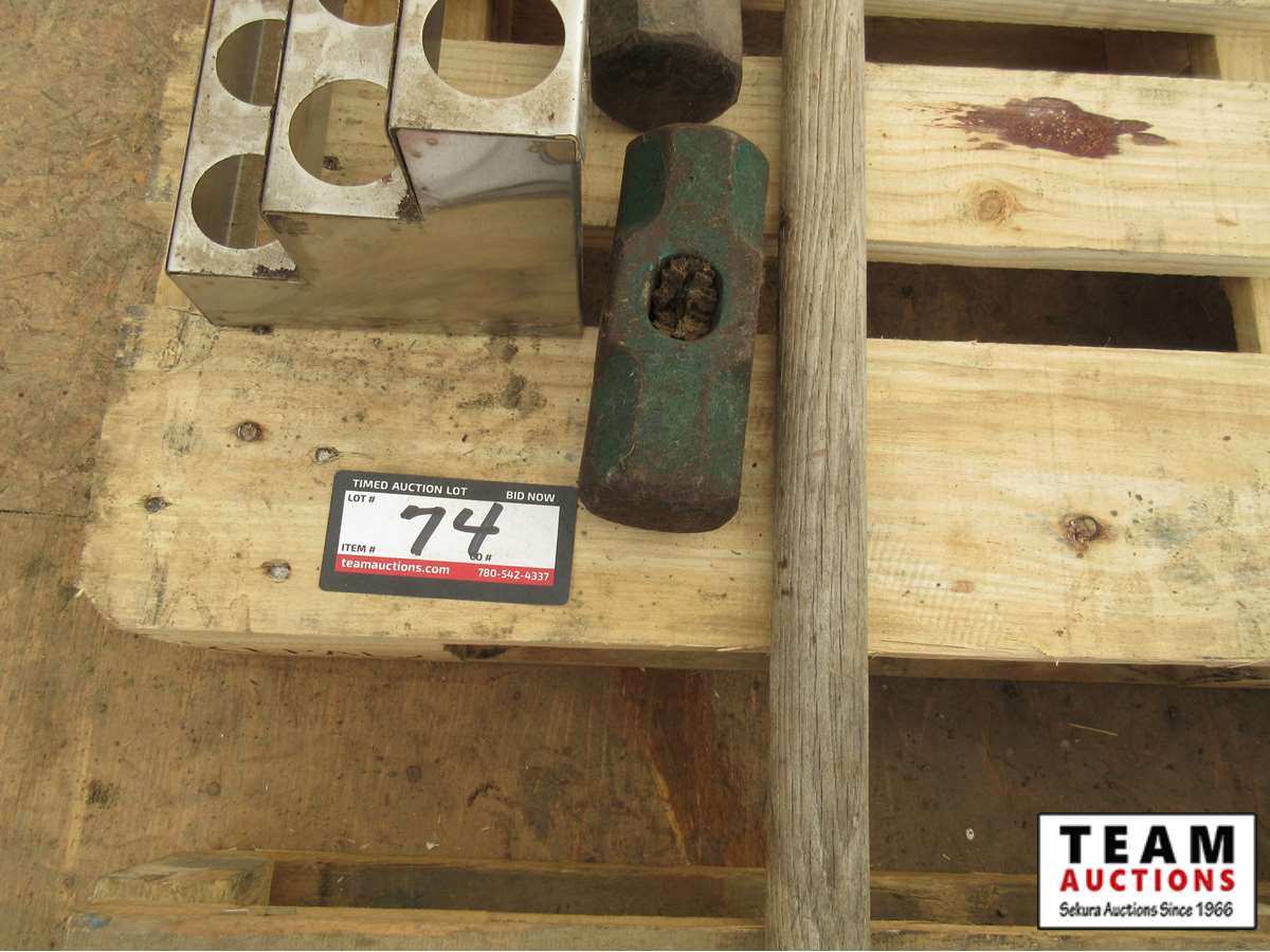 74 (2) Sledge Hammer Heads, Sledge Hammer & Stainless Steel Tool Rack