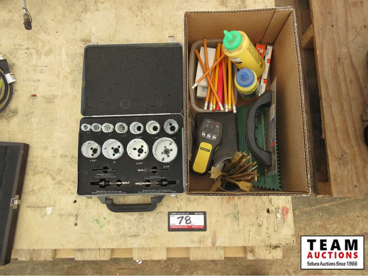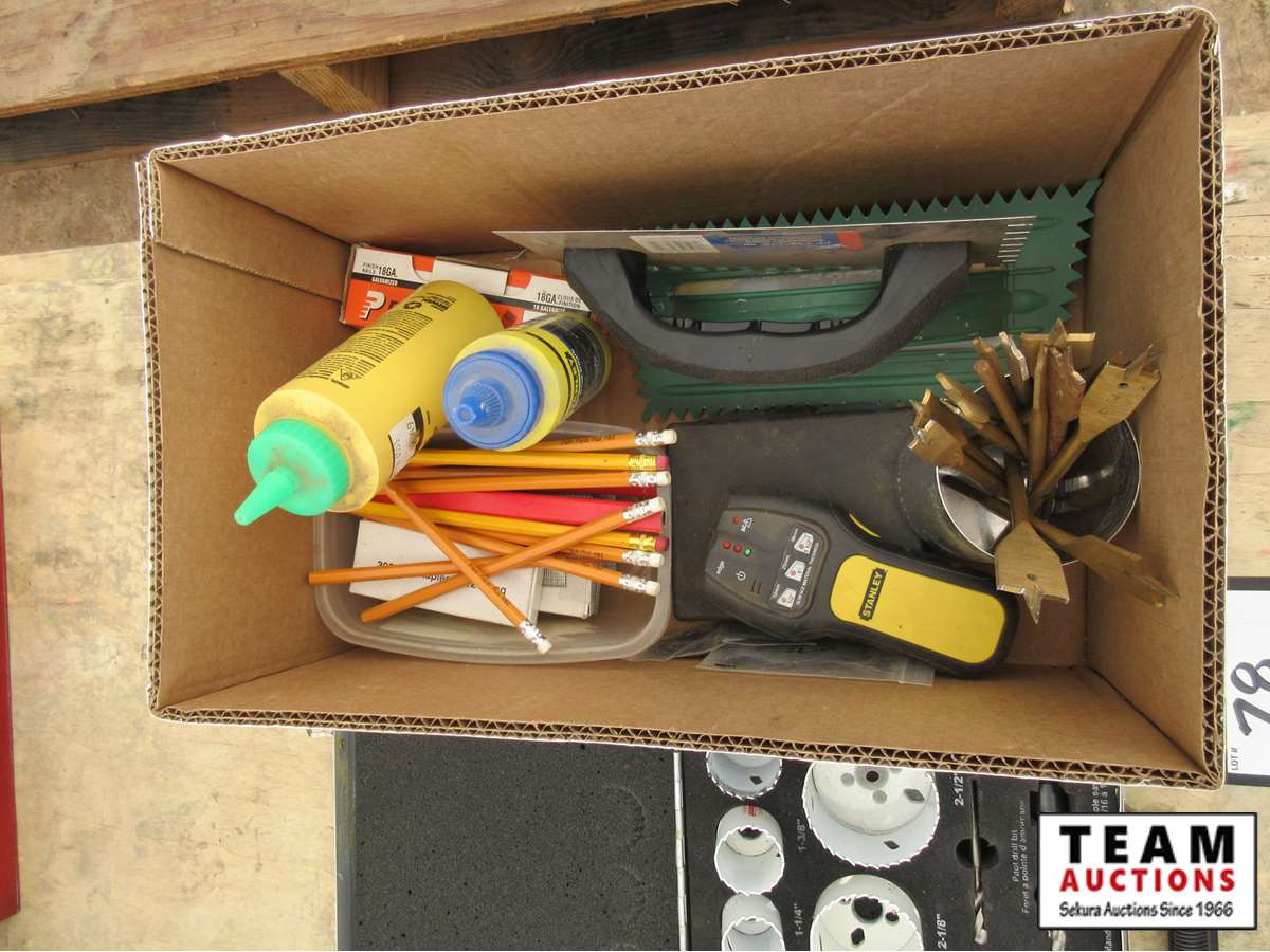 hole saws, chalk, staples, tile trowels, stud finder, etc