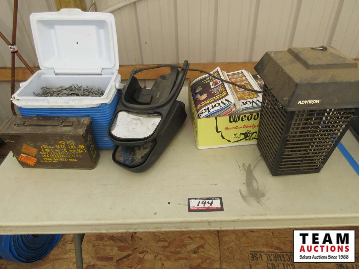 mirror extensions, Workshop magazines, electric bug killer, ammo box