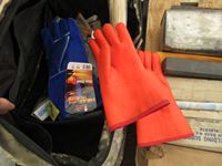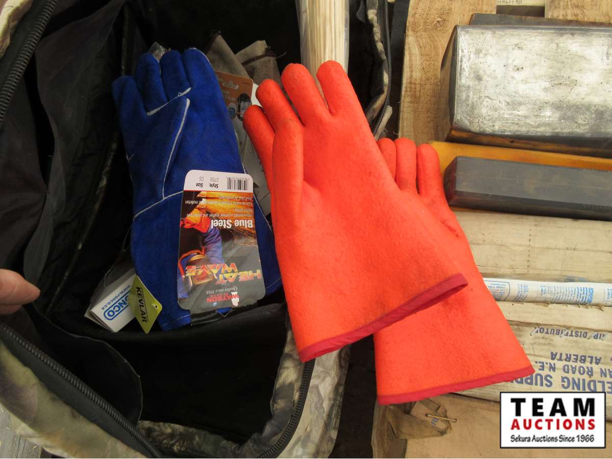welding rods, gloves, torch tips, carrying case