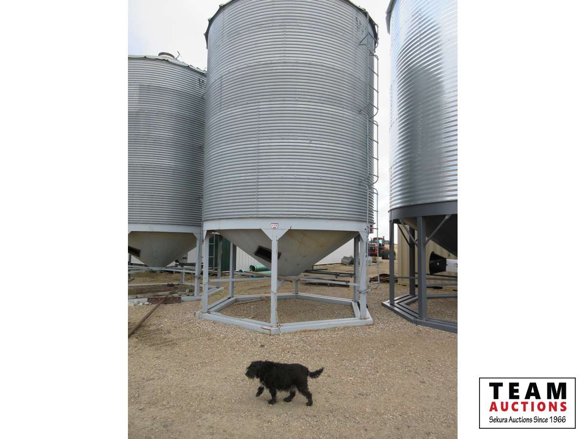 2300 +/- bu cap, 6 leg hopper, double steel ring foundation, ladder, OPI cable, Rocket aeration