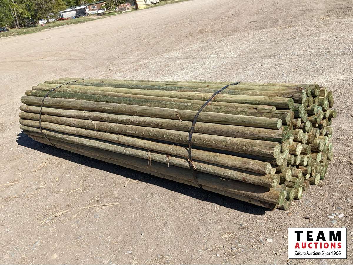 760 (100) 3-4 In. x 12 Ft Treated Blunt End Poles (Unused)