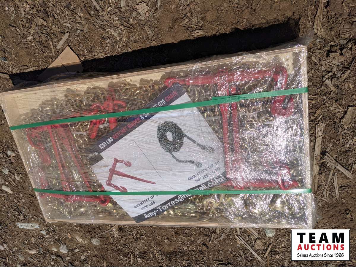 (5) 9200 lb ratchet binders, (10) 3/8 in. 20 ft G70 chains