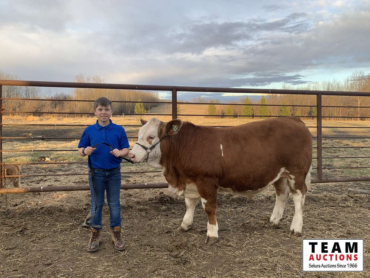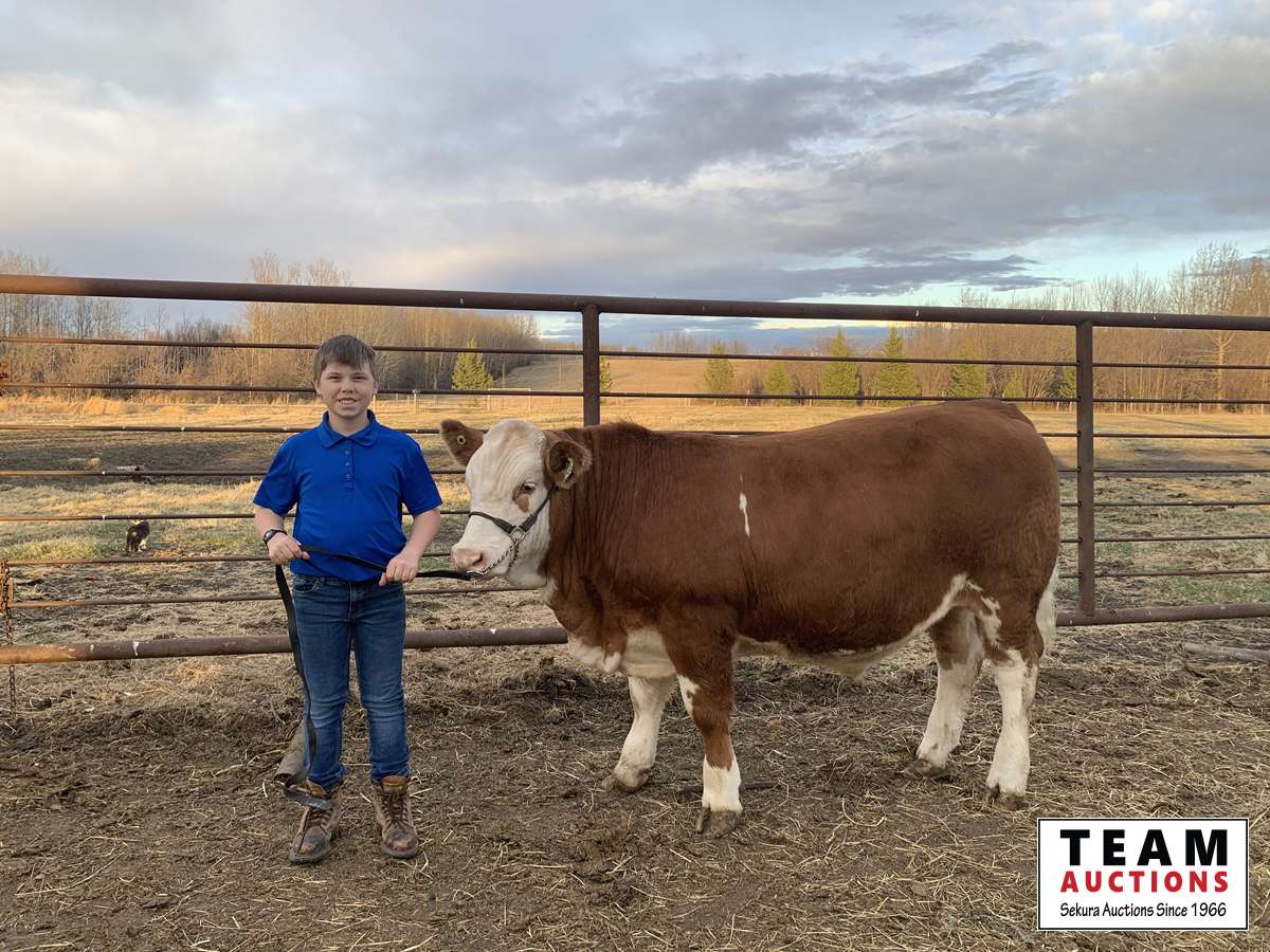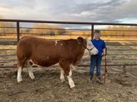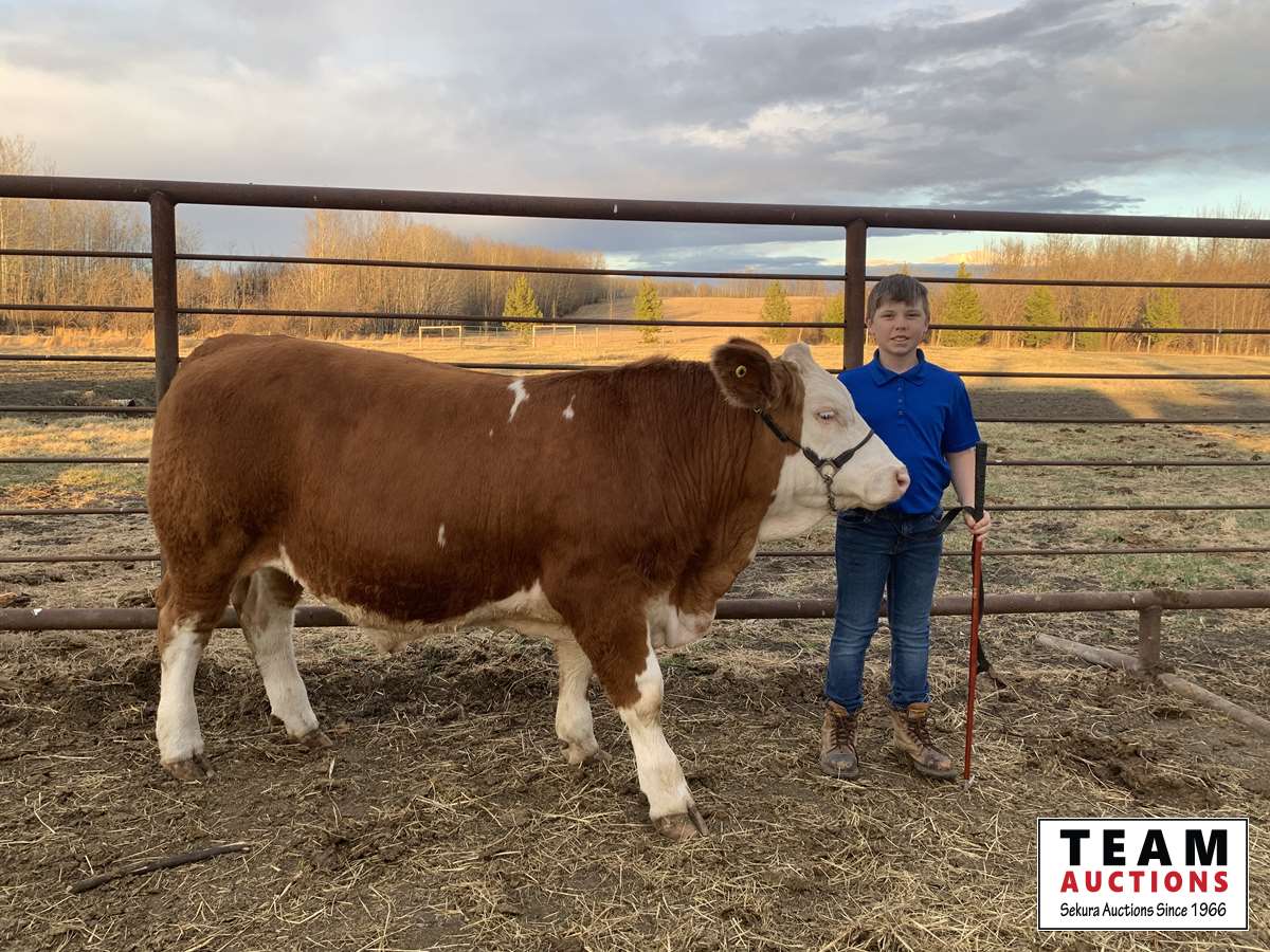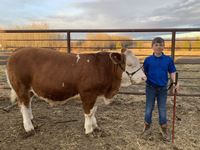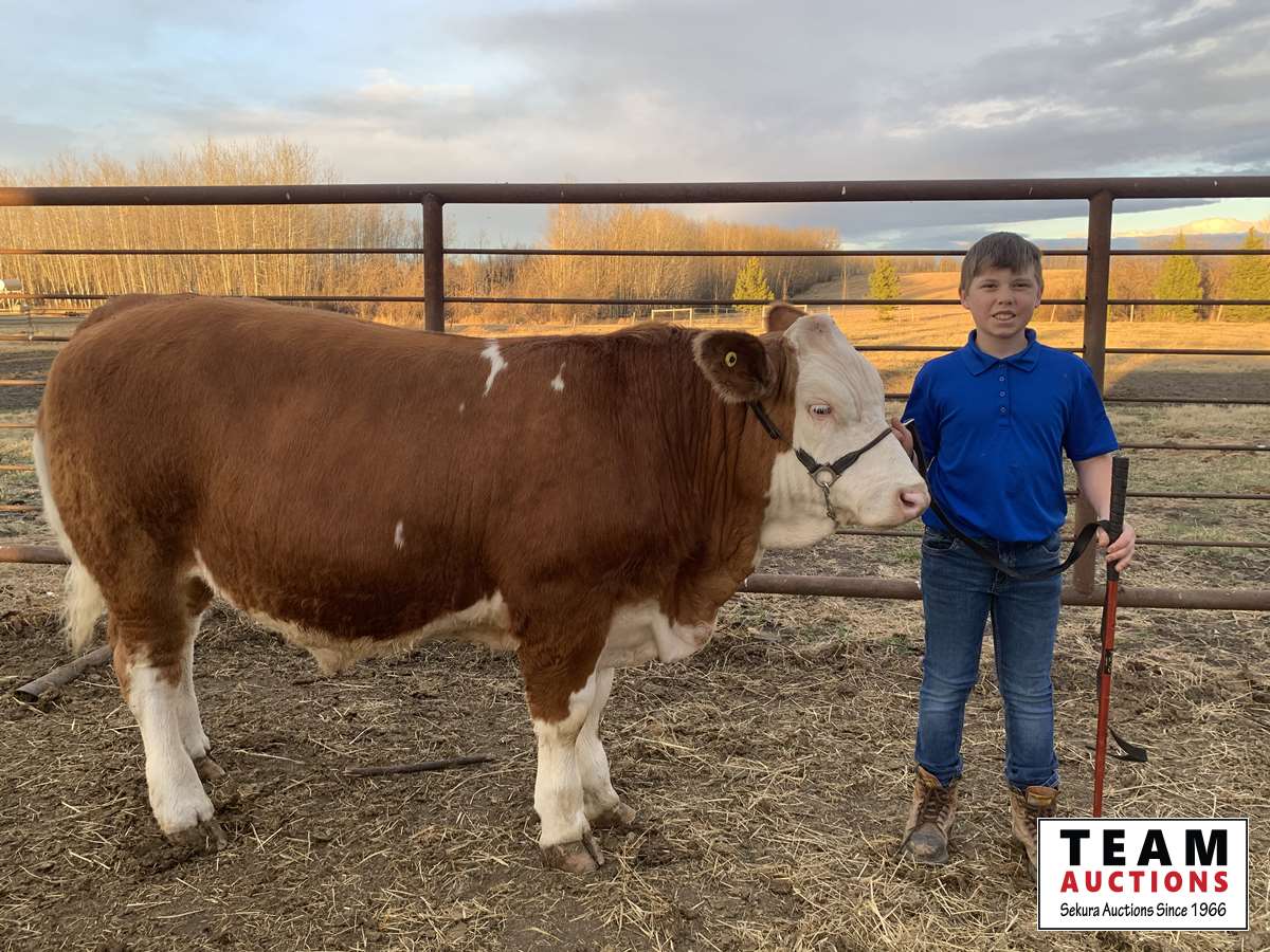Hello, I am Brandt Holmgren and am 11 years old From the Lin Berry Buck 4-H club. This is my 3 year in 4-H,raising a commercial Simmental cross. On Weigh In he was 805 pounds. Before he was quite smaller than the others in pen with him, but now he has the build of a bull with a long body ,but strangely for his body he has a small head. I still feel sad we didn’t get do show day last year, maybe this year we’ll do a outside show day!