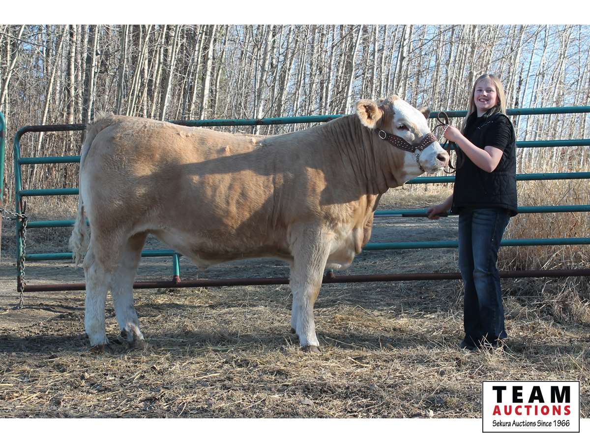 Howdy! My name is Taydyn Robertson, I’m 13 years old and this is my 3rd year with the Two Rivers 4-H Beef Club. This is my steer Chuck and he is a Charolais/Black Angus cross. Chuck is from similar blood lines as my 4-H steer from last year. I picked Chuck out from our family’s herd because of his correct confirmation and his overall style. He was born on April 26th , 2020 and he caught my attention because of his quiet temperament that he showed as a calf. At our clubs’ weigh day last November he weighed 580 lbs. I find him unique because he loves his independence without the halter on, but as soon as I put on the halter he is more than willing to do what I ask! If you have any questions about Chuck, please contact us at 780-202-2662.