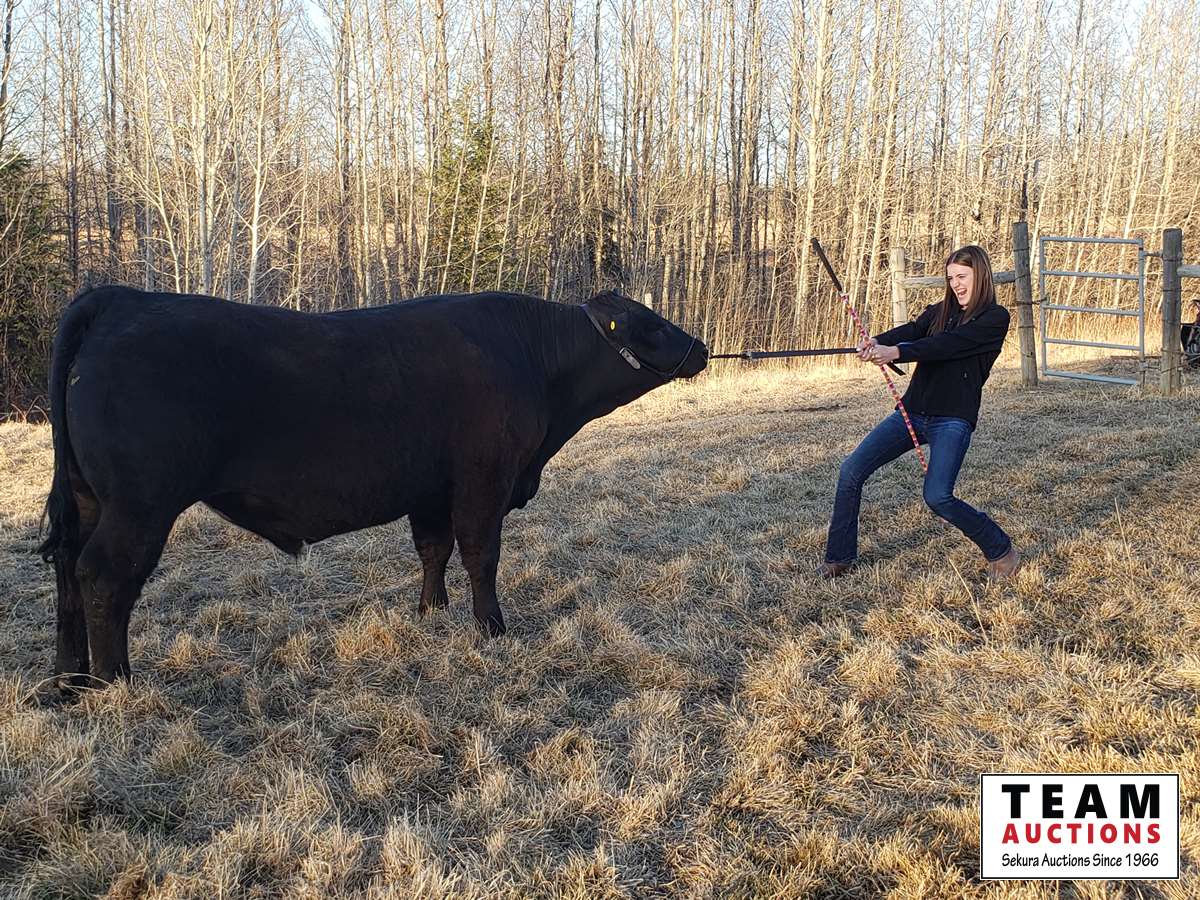 My name is Myah Robb and I am 14 years old, this is my 6th year in the Lin-Berry-Buck Beef Club. This year I am the president of my club and the interclub beef treasurer. I am a grade 9 student at Frank Maddock High School. In my spare time I play volleyball and curl, and also enjoy snowboarding and quadding. I have chosen a black Simmental Cross steer who has a very calm temperament and has been easy to train. He is a long bodied, large framed steer and is finishing quite nicely. I hope you can join us for the online beef sale this year.