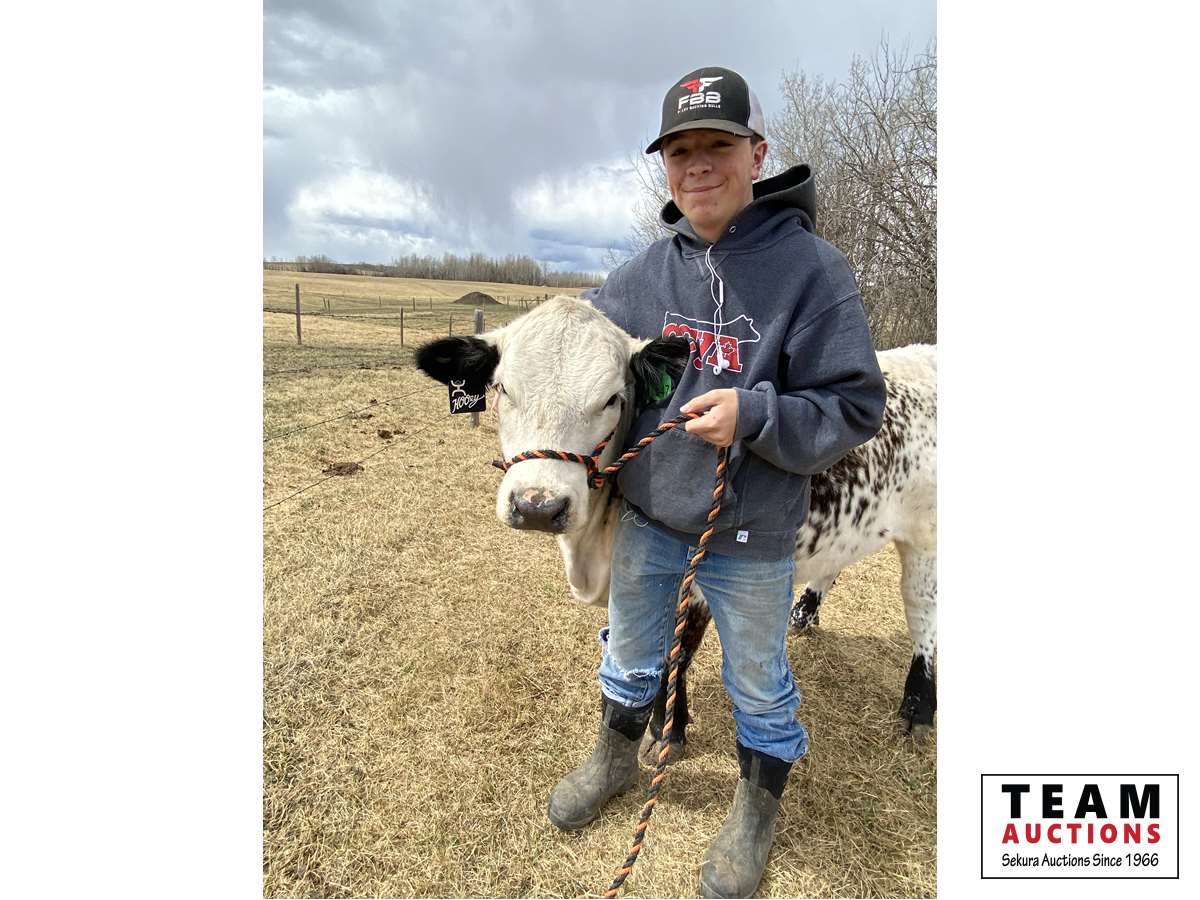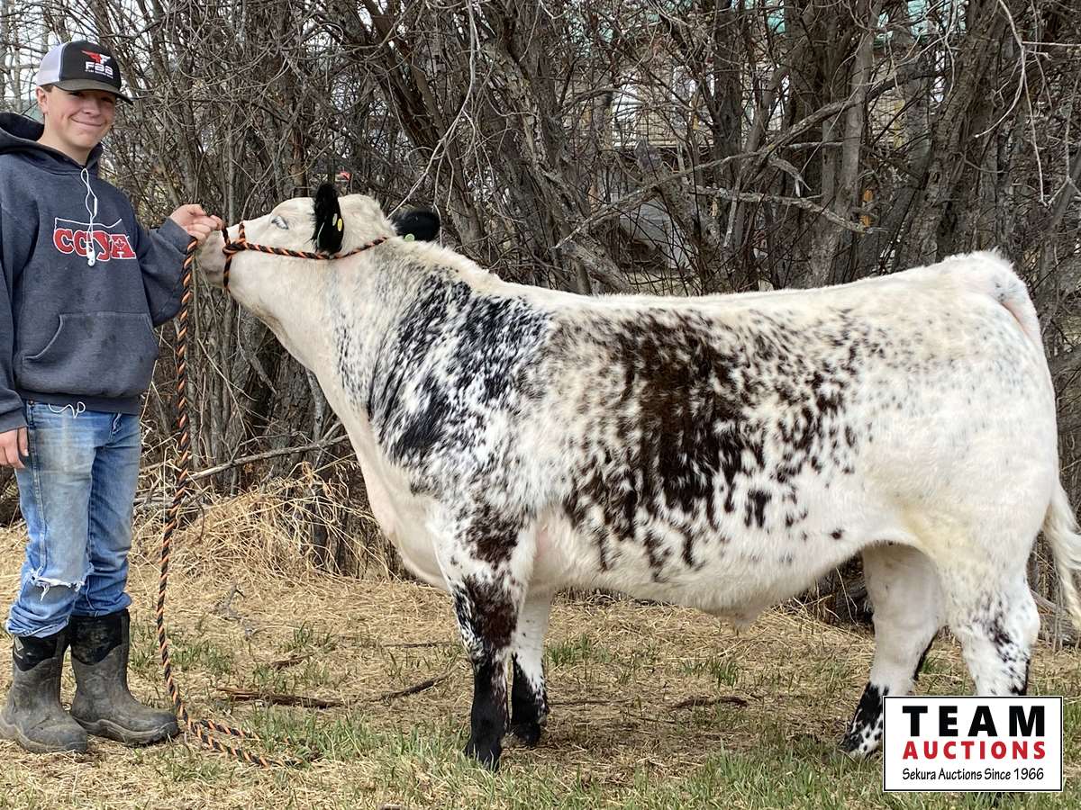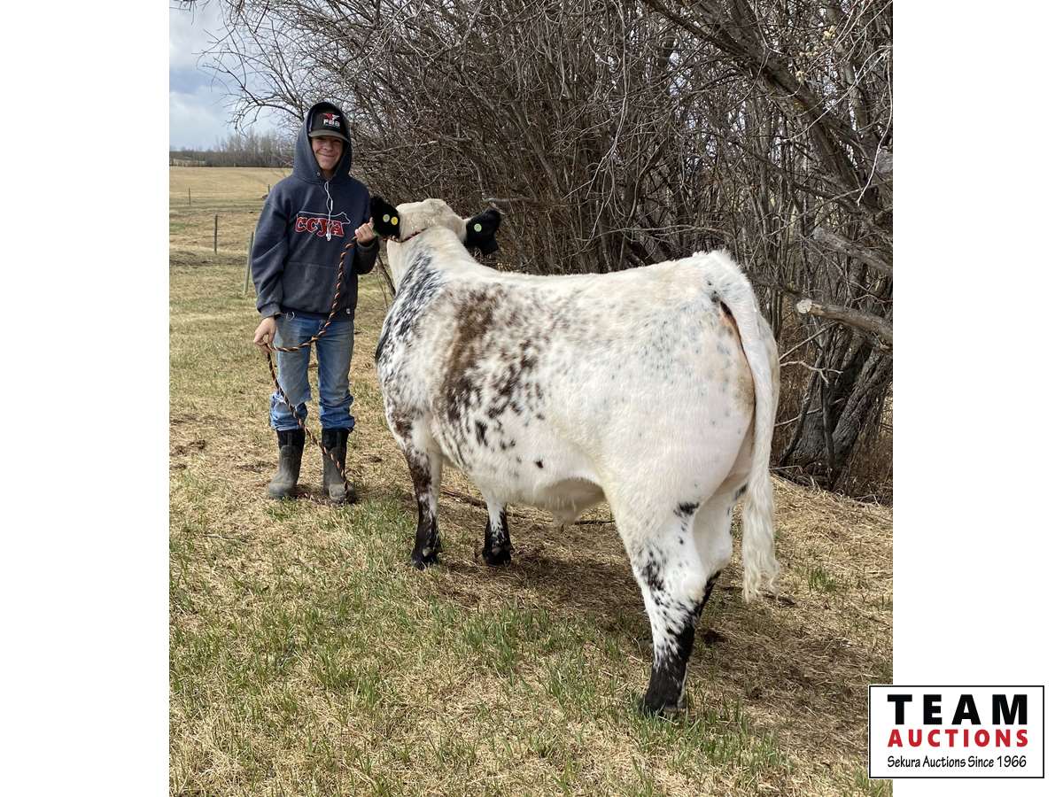 Hi I’m Colt Calvert! I’m 15 yrs old and this is my 6th yr in 4-H. I’m a member of the Two Rivers 4H Beef club. I live with my family on the MT Bar Ranch north of Rocky Rapids. We raise the most outstanding speckle park beef West of the 5th! This is my speckle cross home grown steer Hooey. He is a progeny of my first 4-H female. His speckle park influence will ensure prime carcass quality with abundant marbling and an impressive yield. If you have any questions about my steer or would like to see more pictures of him please email me at mtbarz@gmail.com