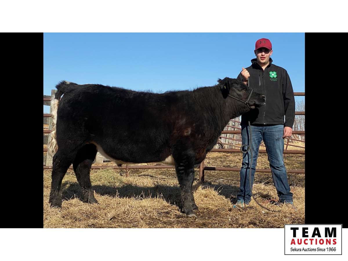"Hi ! My name is Garyn Willett and this is my 4th year being a part of the Lobstick 4H Beef and Multi Club. I live on a farm north west of Wildwood AB, where I raise Simmental and angus cattle. This year I picked a Simmental steer named Juan. My steer Juan was a family raised steer with some cool white stripes and he has some snaz to his step. I chose Juan because he was a nice thick calf and was always my favourite calf. At weigh day my steer started off at a weight of 625 pounds! We have had a great interesting year together, both learning more and more about each other each day that passes. 4H has taught me so much throughout my 4 years of being a part of 4H. My favourite part of being in 4H is being able to attend all the programs 4H Alberta has to offer. Sadly this year with covid, there have been only online programs so far. It is always fun going to IN PERSON programs and meeting new people around the province and connecting with members in surrounding clubs. I am excited for years to come and can not wait to be able to have another in person show and sale.