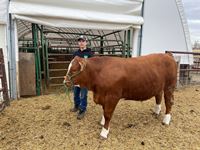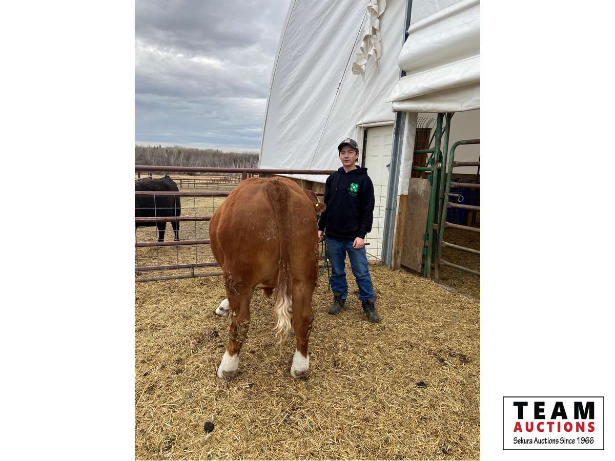 My name is Kameron Brereton and I am 15 years old. This is my first year in the Lobstick 4-H club. I live on a small farm just outside of Evansburg, AB. I have two calves, my market steer and my heifer project. This year I have a Simmental Angus cross steer named Moe and a Simmental cross heifer named Curly. We bought them last March as small calves. The reason I called them this is because there were three calves that I could've chosen, so I named them after the three stooges. During my short time in 4-H, I’ve learned so much about animal handling and livestock management. Hopefully I can learn more in the future. Working with my calves has been good. They have put on a sizable amount of weight since I started the project. Working with them has been a pretty good experience. I am working with them to make them presentable for achievement day. Thank you for your interest in my market steer project. If you want to know more about my steer project, you can contact me at kambrereton2020@gmail.com. Please tell me what you think of Moe.