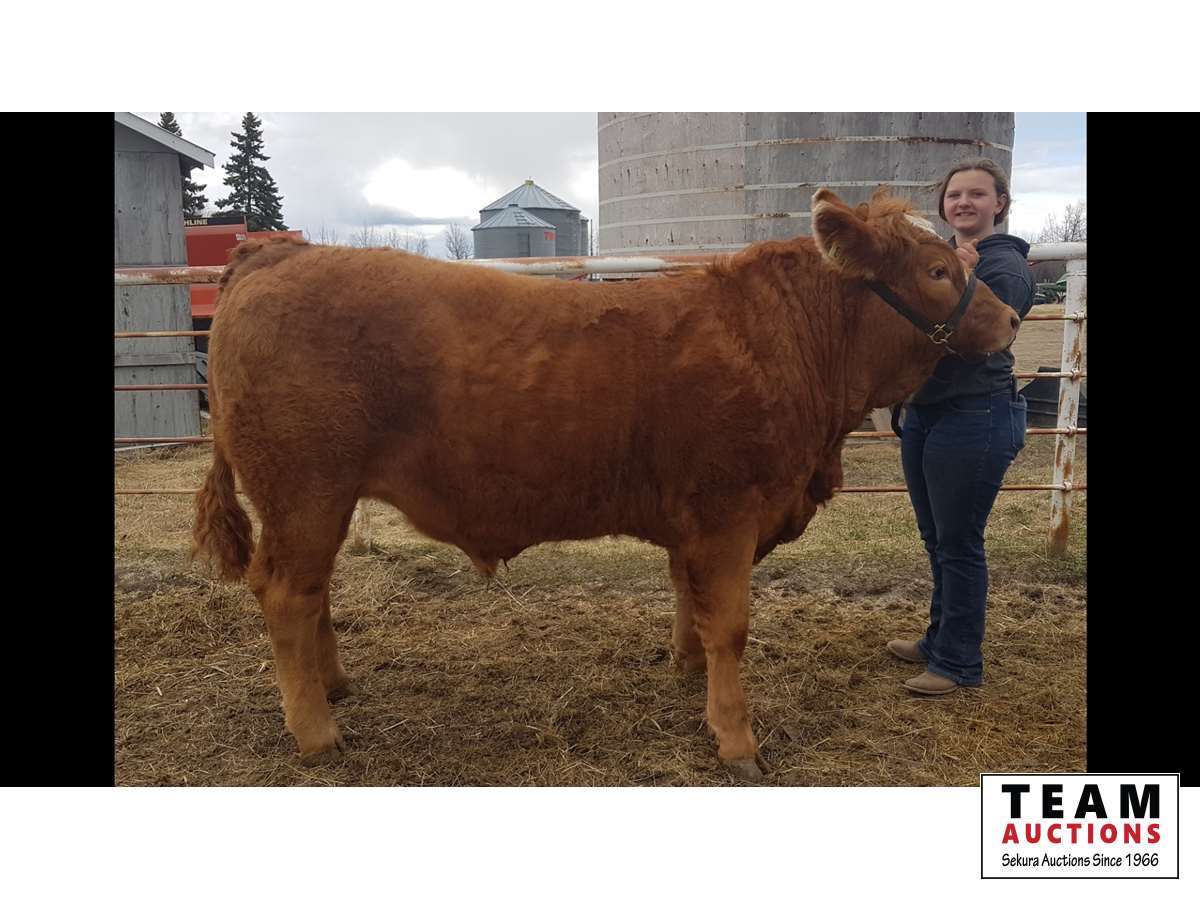 Hello everyone , I am Wendy Bahrynowski and this is my fifth year in the Lobstick 4-H Beef Club. I am a student at Grand Trunk High School. I very much enjoy playing sports , with volleyball being my favorite. I have really been missing playing on the school teams but ...... hopefully next year . In my free time I love to ride horses ! I have two horses , one is a green broke mare name Pandora (who is proving to be a real challenge) and the other is an old reliable gelding named Tyson.  This year for my heifer project I picked a Simmental Angus cross named Charlotte , she should be over 1000 lbs by the end of May, with her build and temperament I think she will make a great cow. The steer I picked this year is also Simmental/Red Angus cross named Tucker. I chose Tucker for his large frame , straight back and nice square butt. He was a little nervous and skittish at the beginning , but he has calmed down nicely and is getting used to the halter. I still have my fingers crossed to be able to see you all in person , but if its not possible feel free to reach out with any comments or questions you might have for me about my steer . Email address is 25Ebywen@gypsd.ca