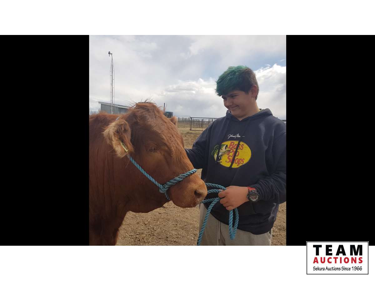 Bonjour, je m'appelle Wyatt Bahrynowski. Just practicing up on my french, after all , if I am going to be a future prime minister of Canada I need to be bilingual . But that won't be for a few years as I am only 12 and in grade 7 at Grand Trunk. Right now I am into scooters, remote controlled cars, quads and baseball. I am a member of the Lobstick 4-H Club, I am really missing all of the in person activities we have done in previous years , but I am having fun with my steer Tyrone. He is a large framed Simmental / Red Angus cross with a great coat of hair. He is thick and deep bodied ! He will make excellent beef ! Tyrone has been pretty calm and easy to halter break..... unlike my sisters steer , hee hee , " let's just say hers has been a little challenging" ha ha . I guess you can call me the cattle whisperer Well. if you have any questions about my steer , his current weight or condition , anything , feel free to contact me at my email , 26bahwya@gypsd.ca