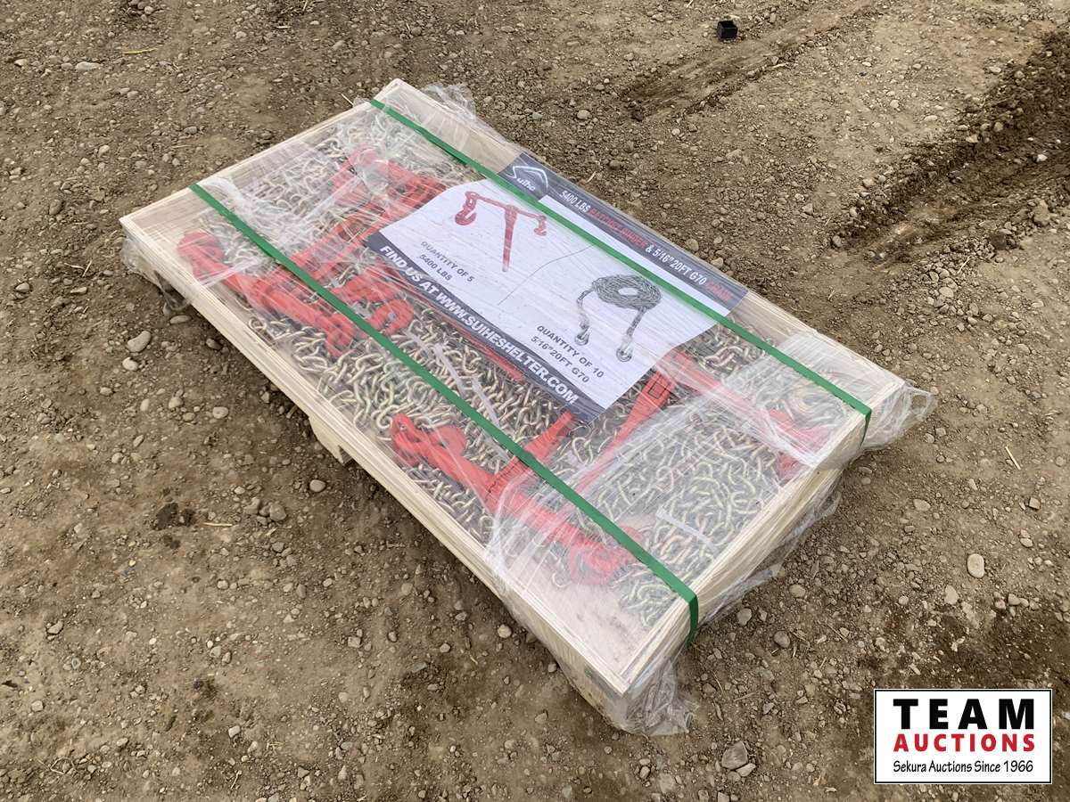 (5) 5400 lb ratchet binders, (10) 5/16 in. 20 ft G70 chains