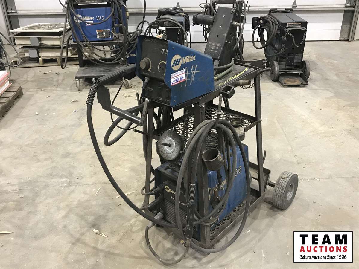 208-575V, c/w Miller S-75S wire feed, s/n LG171035W, cart, cable, gun, calibrated 12/20