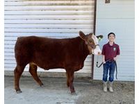 Hi my name is Eric Sabadaska. I am 11 years old and in grade 5 at Blueberry School. This is my third year of 4-H and my second year with a beef project. This year I have a steer named Chevy. He is a Red Angus Hereford cross. He is very calm and loves to be petted. I enjoy helping my dad around the farm, riding my bike and playing with friends. I hope you will join us for the sale!