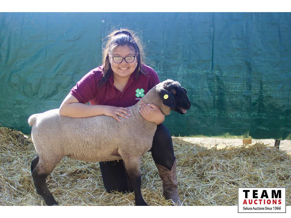 Hello, my name is Lynzie I am 13 and this is my 3rd year in 4-H lamb. I’ve always loved to work with lambs because they are smaller and not as scary to work with as steers. My lamb’s name is Sundae and is faded black and is a Suffolk cross.  This year I'm working on leading my Lamb more so it can look perfect on show day. I would like to extend a special thankyou to Sky Blue Farm who purchased my Lamb last year.