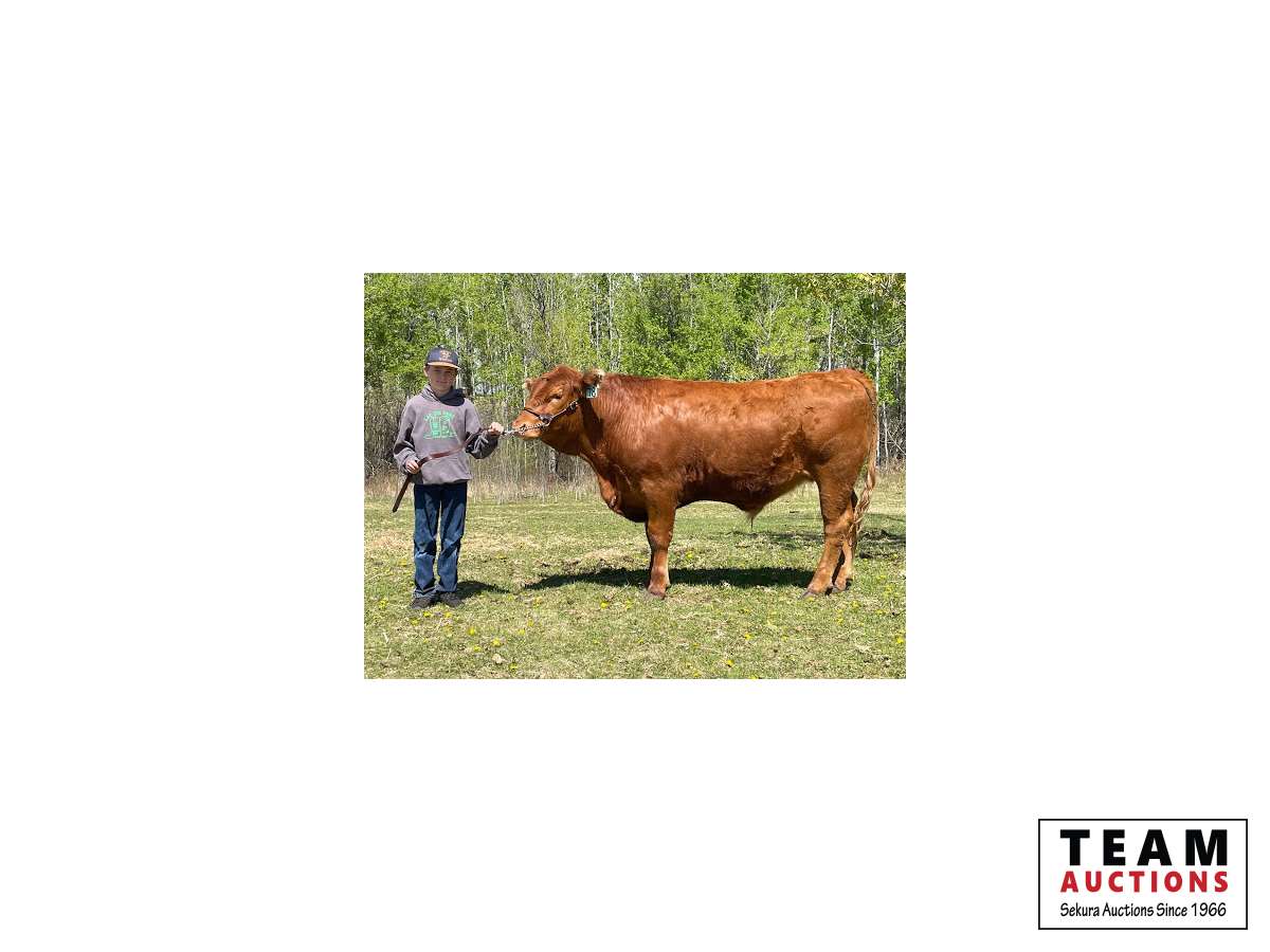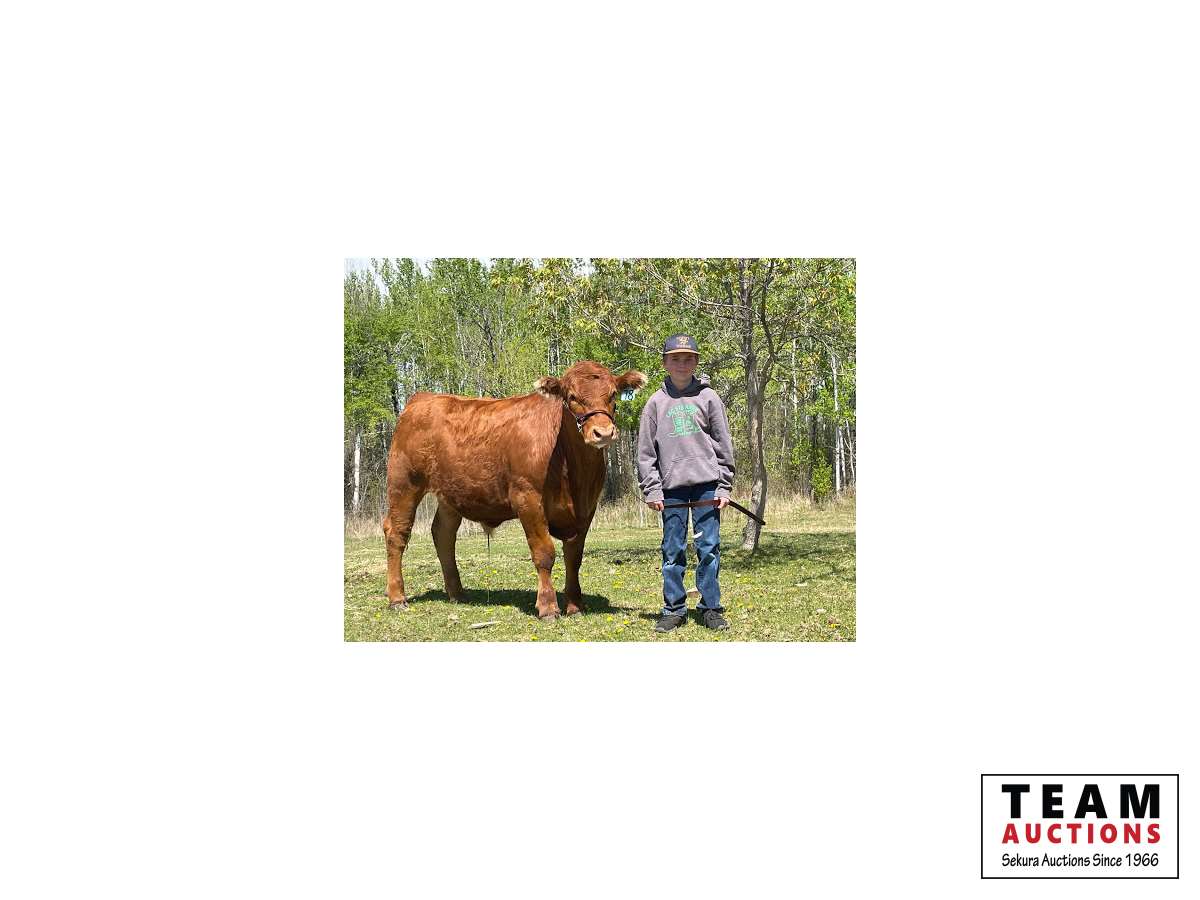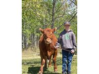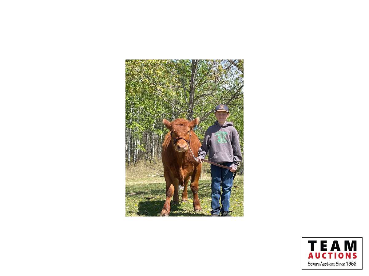 My name is Grayson. This is my first year in 4-H. I am 10 years old. I am in grade 4 at Rich Valley school. This year I have learned a lot of useful skills like public speaking and judging. My steers name is Browny. Having Browny has taught me about proper feeding of animals and how to lead them. Outside of 4-H I like to dirt bike and play hockey. Browny is a Red Angus that is big and friendly. I have a butcher spot booked for June 8th at Schleckers in Carvel,AB if needed.