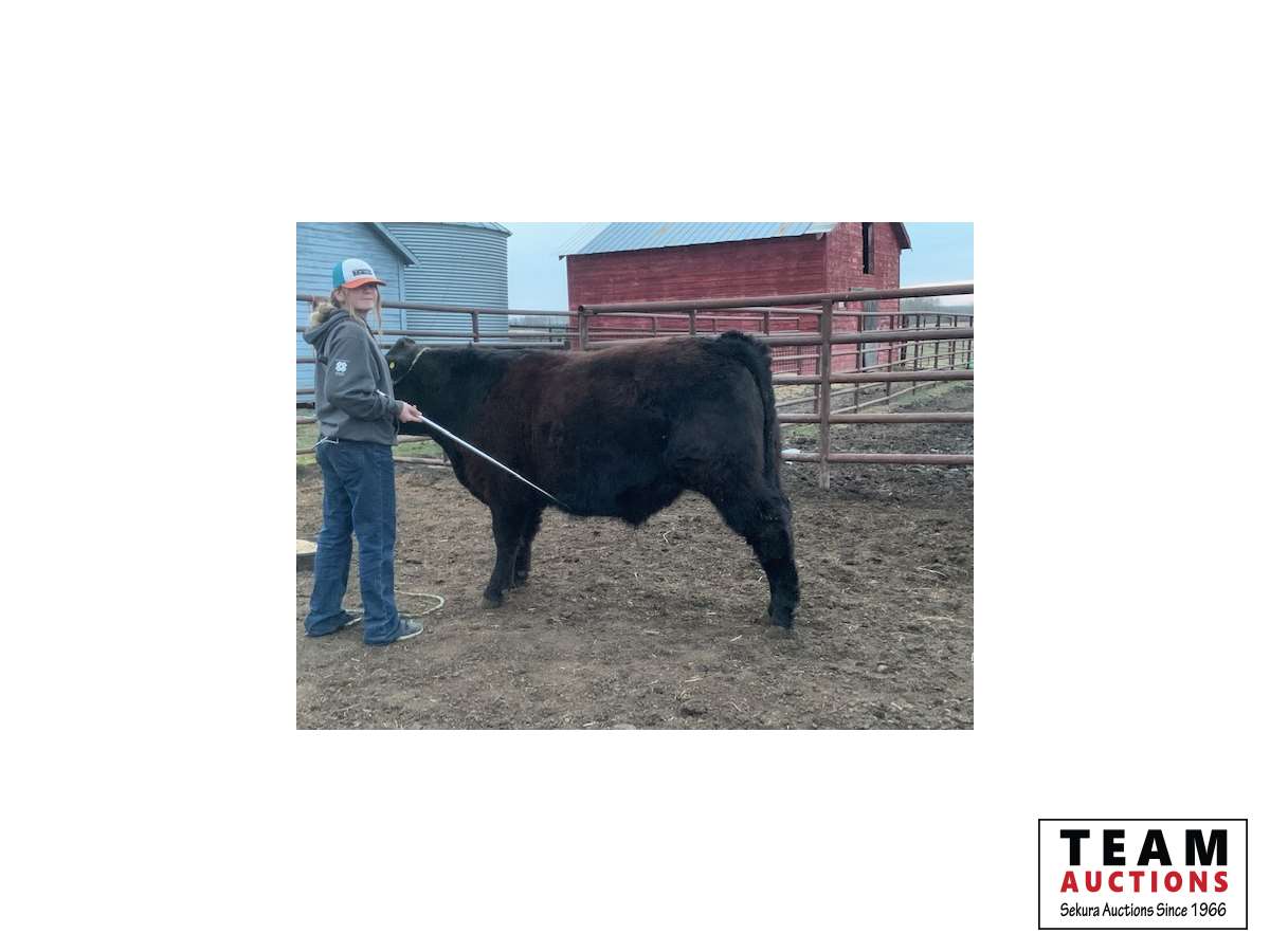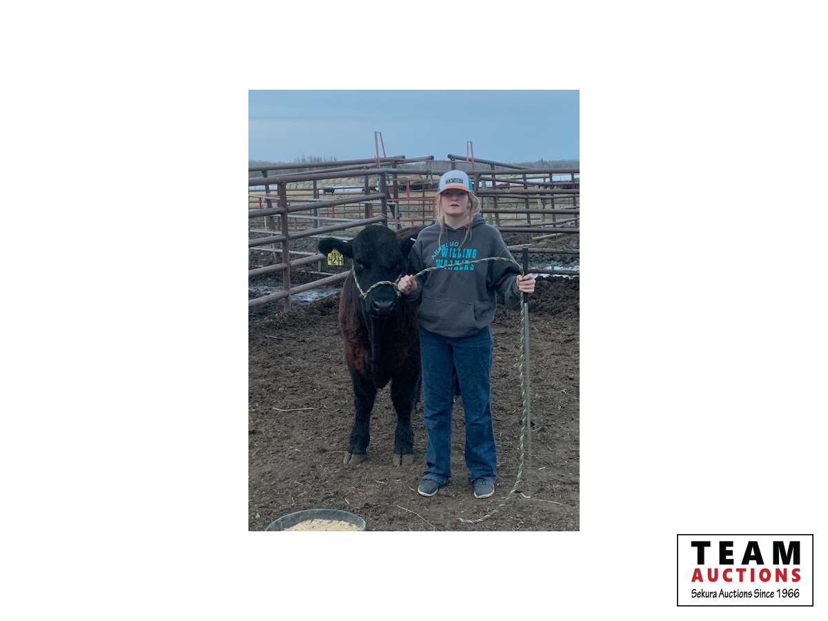My name is Payton. I have been a member of Anselmo Willing Workers for 6 years now. I learned a lot from 4-H, such as being a role model, caring for animals, and being creative. I am a grade 6 student in Elmer Elson Elementary. When I’m not farming or hanging with cattle, you can spot me with my horses either roping or barrel racing, or playing sports like hockey and basketball. My beef project this year is a black Angus/Simmental cross named Captain that I picked from our family herd. Captain was a bottle fed calf then moved to a bright green pasture for the entire summer. Captain and his buddies are being fed barley and hay. If you want a juicy steak or a cheeseburger, Captain should be your pick!