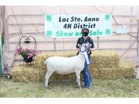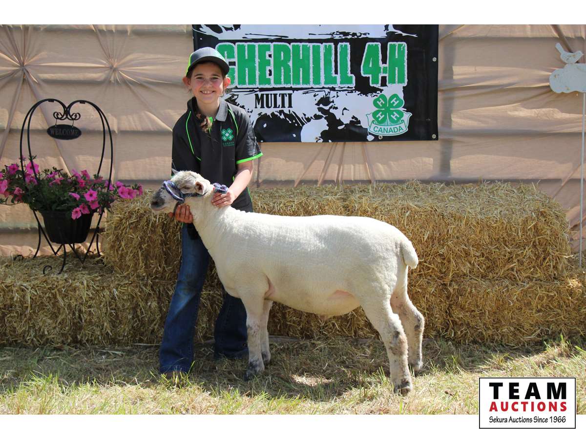 Hi my name is Olivia Russell I am 9 years old and this is my first year in Cherhill 4-H multi club. 4-H has been very fun so far. I learned how to do public speaking and I did lots of tire recycling and workshops. I have learned how to feed sheep so they get nice and big. I've also learned how to halter break my sheep. When I'm not doing school I love to play outside in the sandbox and I like to build forts and ride my horse. My sheeps name is Fluffy because he is very fluffy. I like giving him big hugs and he likes nibbling on my hair. If you need food for a family meal Fluffy is your sheep. I have a spot booked in Sangudo after the sale.